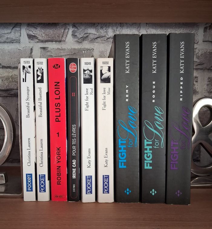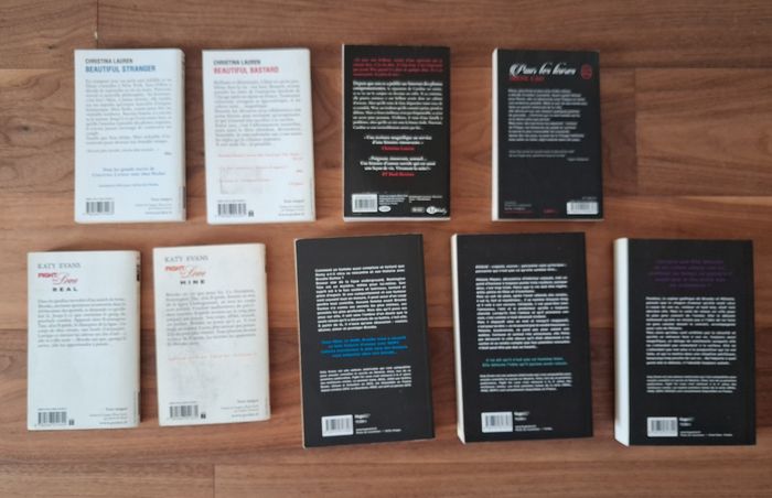 ✏️ Beautiful Bastard ✏️ Beautiful Stranger De Christina Lauren Edition Pocket Bon état ✏️Plus loin Robin York Edition Milady Bon état ✏️ Pour tes lèvres Irene Cao Edition Le livre de poche Très bon état 5 premiers tomes de la série Fight for Love Katy Evans Bon état - pages jaunies (voir photos) 2 aux Editions Pocket ✏️ Real ✏️ Mine 3 aux éditions Hugo & Cie ✏️ Remy ✏️ Rogue ✏️ Ripped Peuvent être remis en main propre sur Paris, La Défense, Bibliothèque François Mitterrand, Gare de Lyon. Etampes, etc...