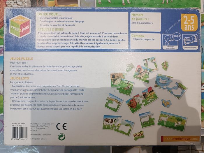 - Composition du lot : 30 pièces de puzzle, cartes de loto