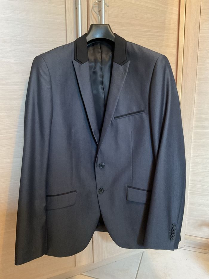 Veste grise doublée homme . Taille 54 . Hauteur 72 cm. Longueur bras 65 cm. Épaule à épaule 41 cm. Devant 3 fausses poches. Intérieur 4 poches. Matière intérieur 52% polyester 48 % viscose. Extérieur 78 % polyester 22 % viscose. Très bon état. Très peu porté. Marque Armand Thiery