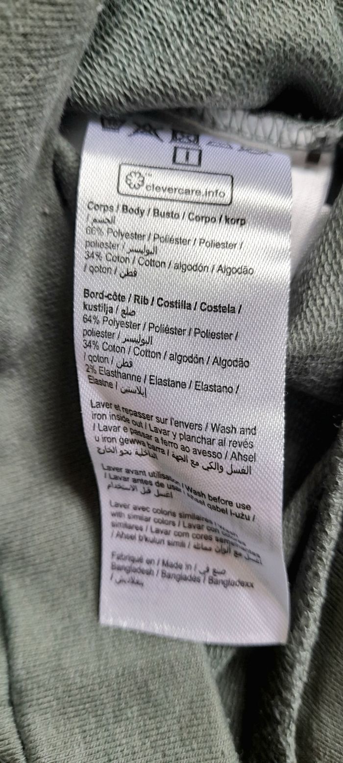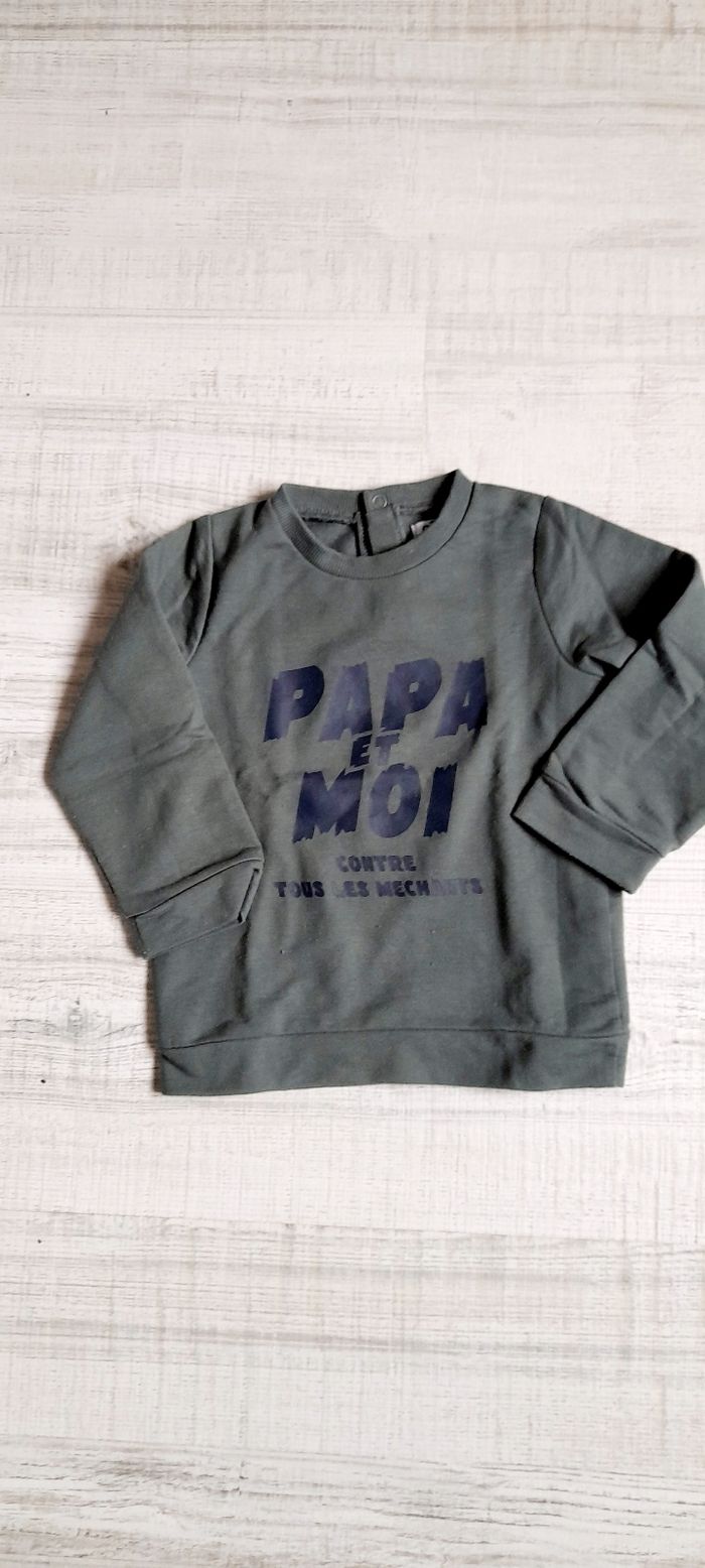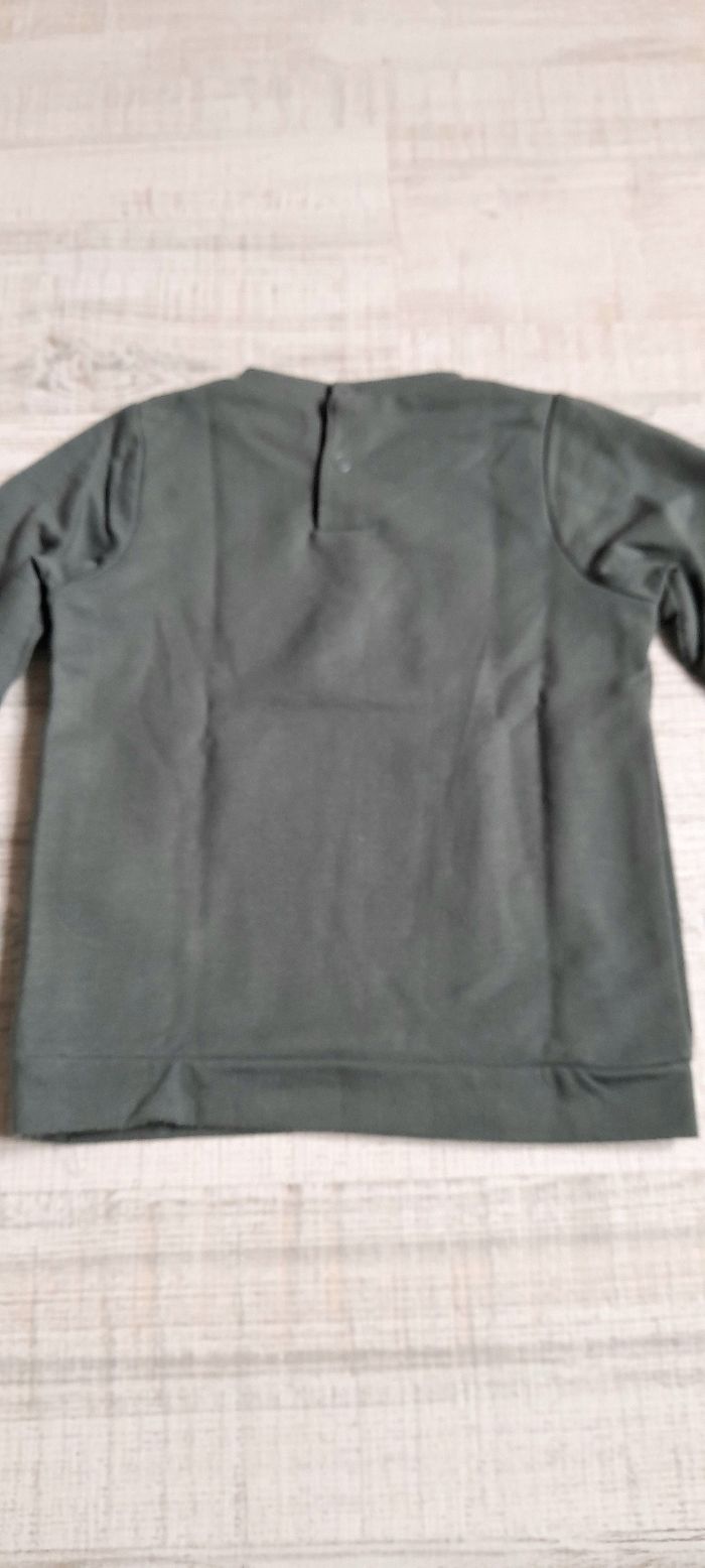 Sweat en molleton fin, kaki imprimé marine. Pressions au dos. En parfait état