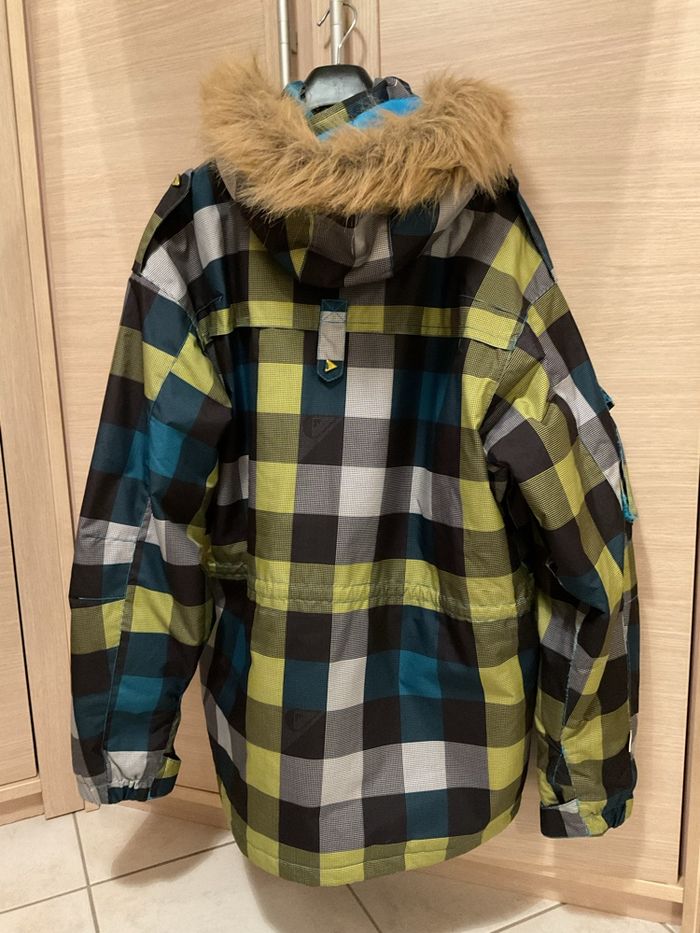 Veste skis / Snowboard homme. Taille L (large). Marque Quiksilver. Imperméabilité 5000 = 5 K . Protection standard. Doublure = polaire type type sherpa. ( chaleur). Hauteur 79 cm. Sous bras à sous bras 65 cm. Capuche amovible. Très bon état. Très peu portée