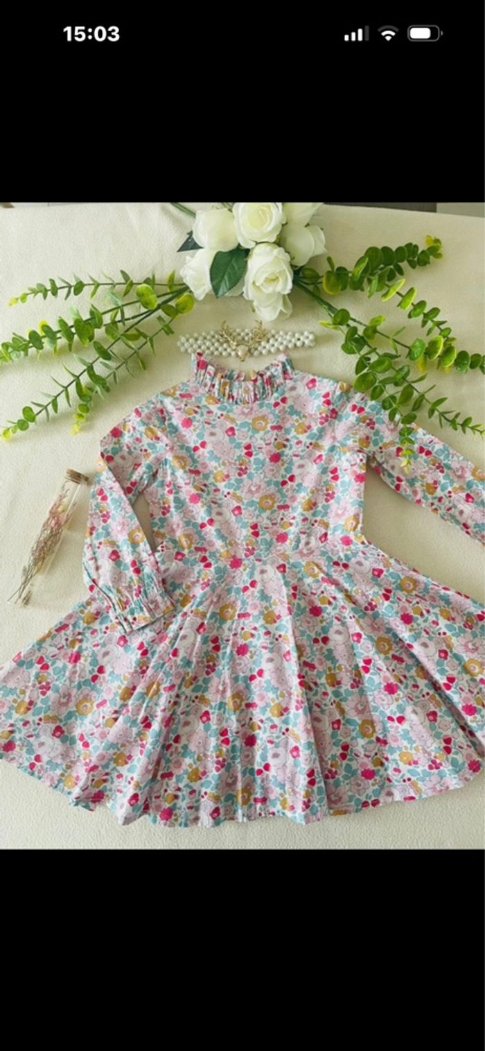 Robe qui tourne , col victoria Liberty Betsy fraise japonais Créatrice 4Pommes 3 ans Comme neuve
