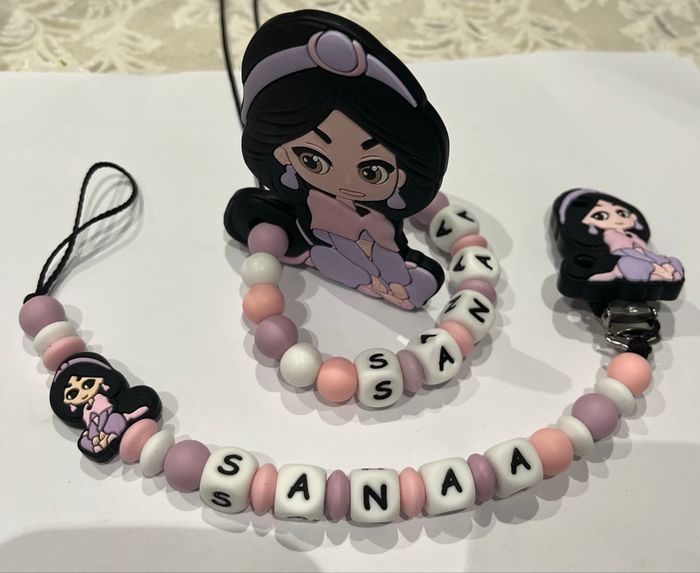 Attache tétine +anneaux dentition Jasmine