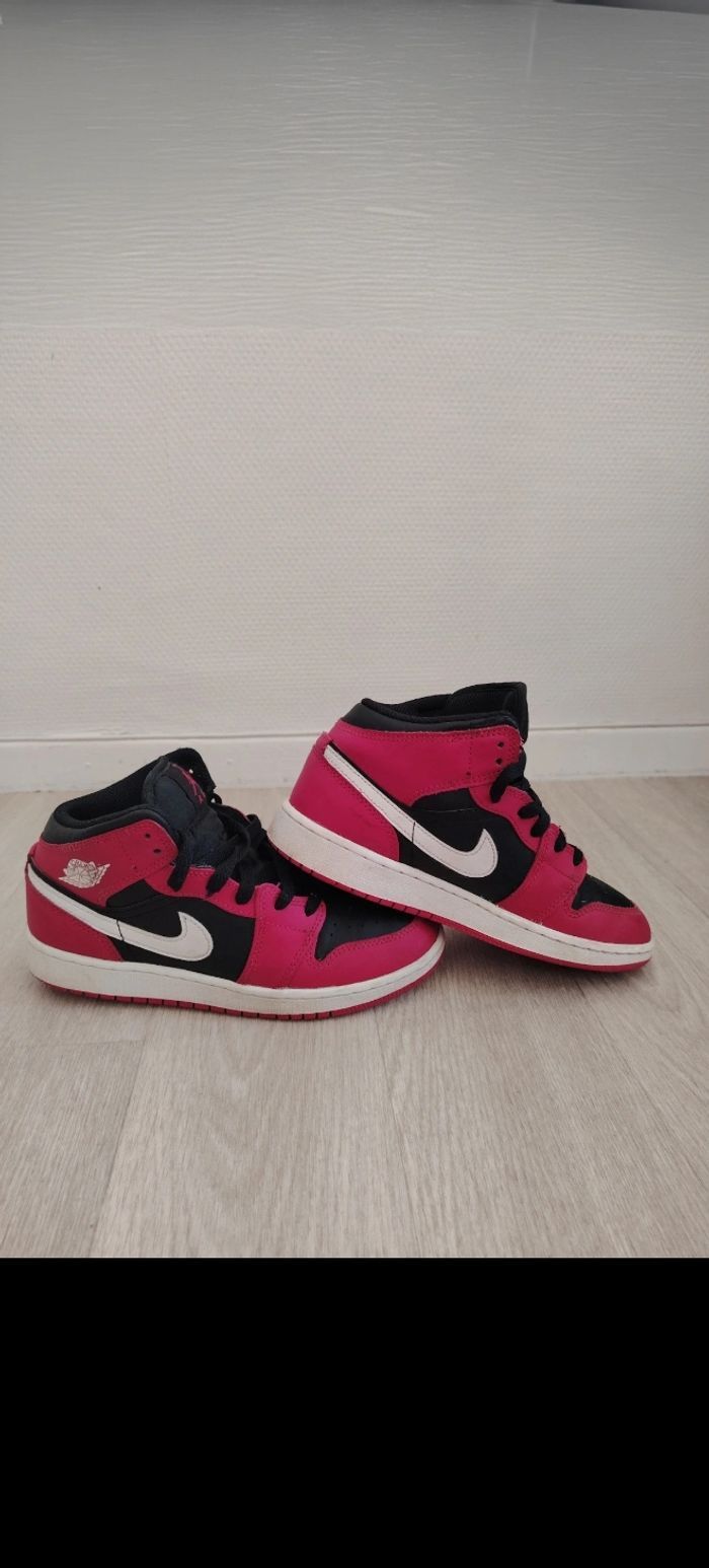Baskets Nike Jordan 1 Mid noir /Rouge - Pointure 36,5 - photo numéro 1
