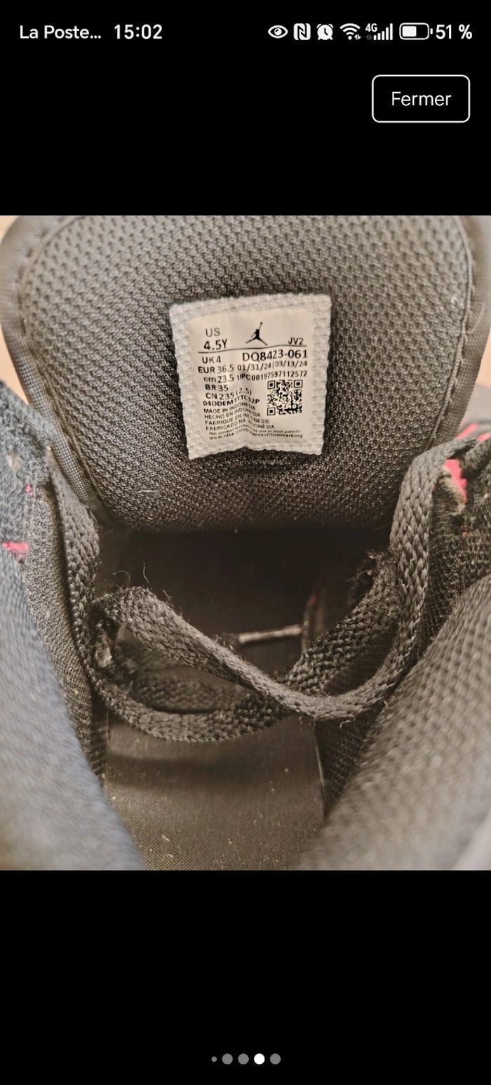 Je vends cette paire de Jordan 1 Mid originale en pointure 36,5 EUR (4,5Y). ​Le coloris est rouge et noir. Elles sont parfaites pour le collège ou le lycée ! ​Détails importants : ​État : Bon état général, chaussures propres. ​Cuir & Semelle : Le cuir n'est pas abîmé et la semelle est quasiment neuve. ​Petit défaut : L'embout en plastique d'un lacet est cassé, mais cela ne gêne pas pour les attacher. C’est pour cela que je les propose à prix réduit ! ​Authenticité : Modèle certifié (Code : DQ8423-061). ​Envoi très rapide et soigné. N’hésitez pas si vous avez des questions !