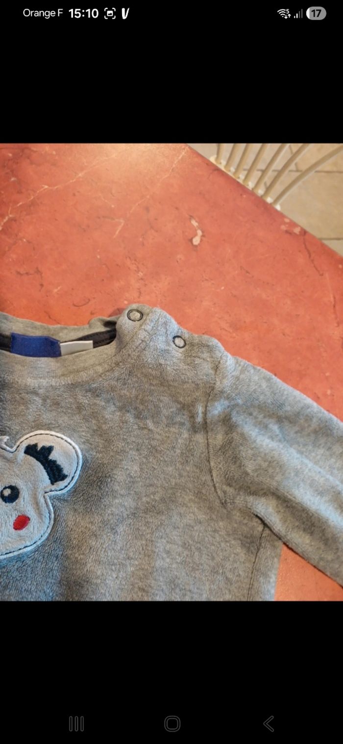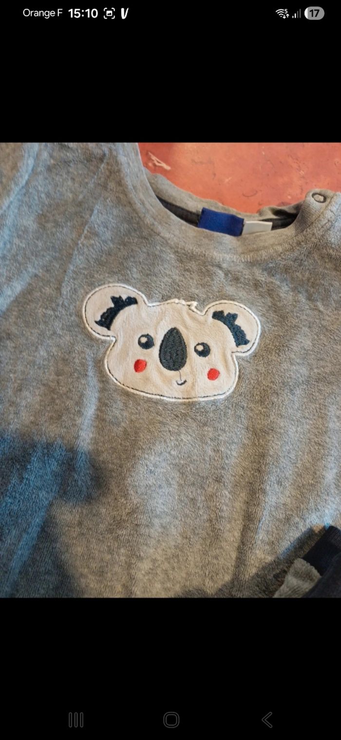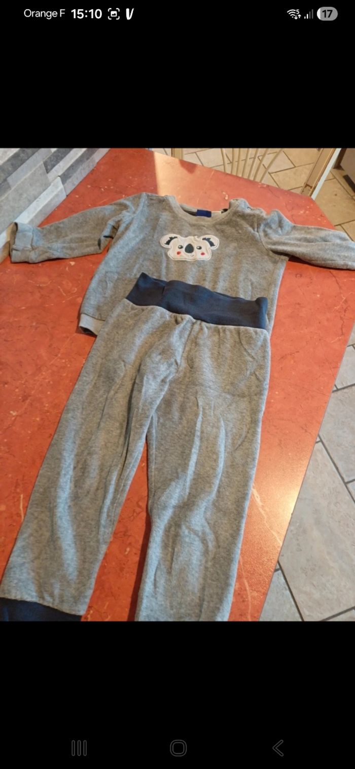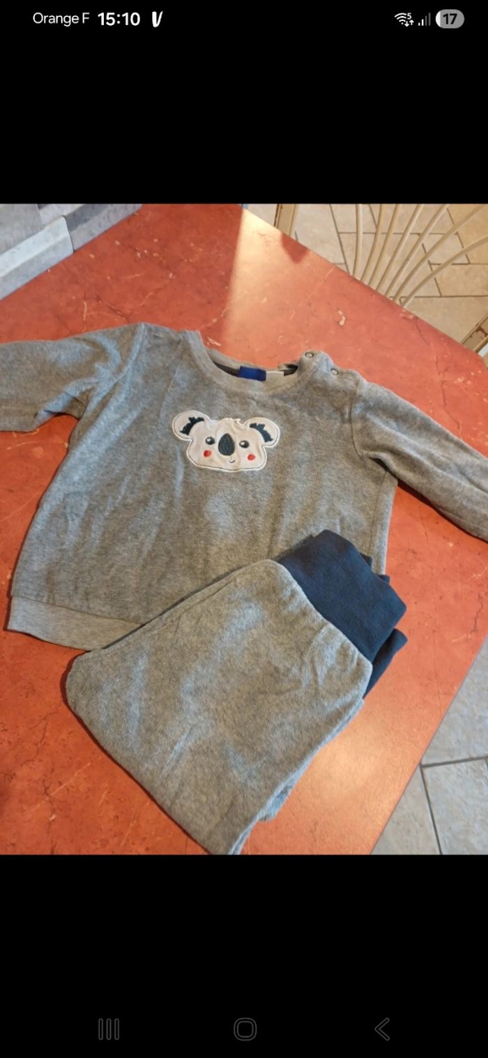 Pyjama en velours, deux pièces avec un haut à pressions à l encolure et un bas elastiqué à la taille