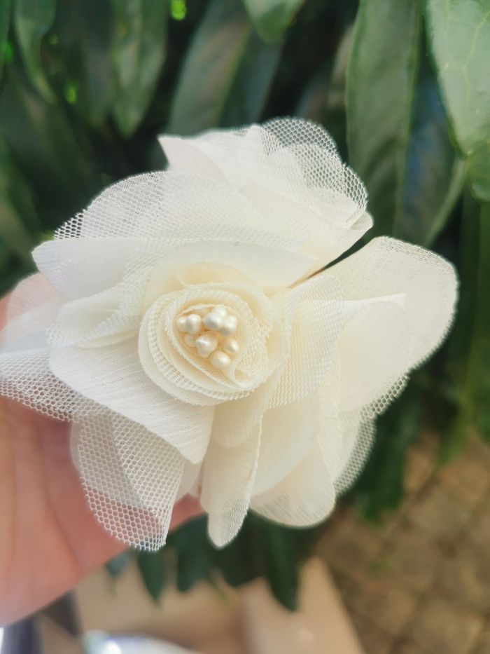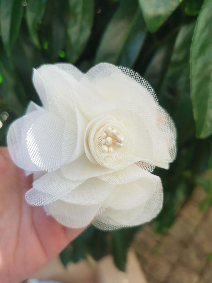Broche fleur blanc en tulle centre en perles - photo numéro 3