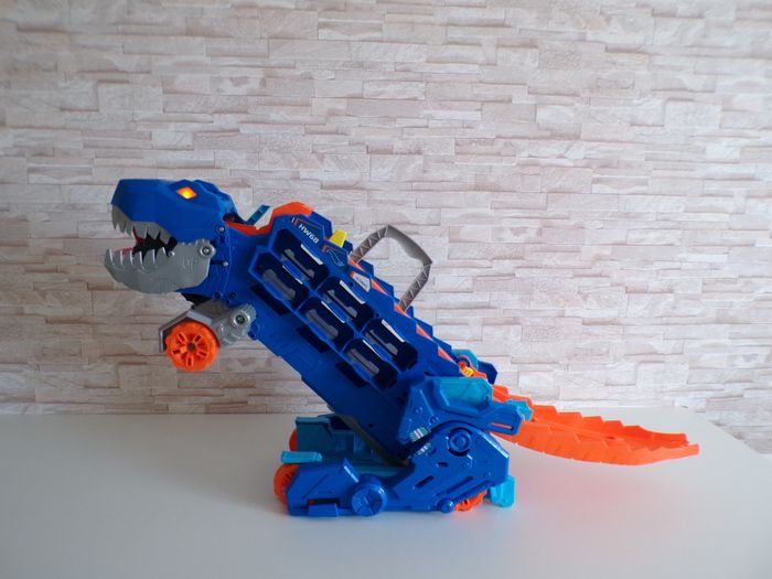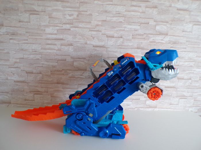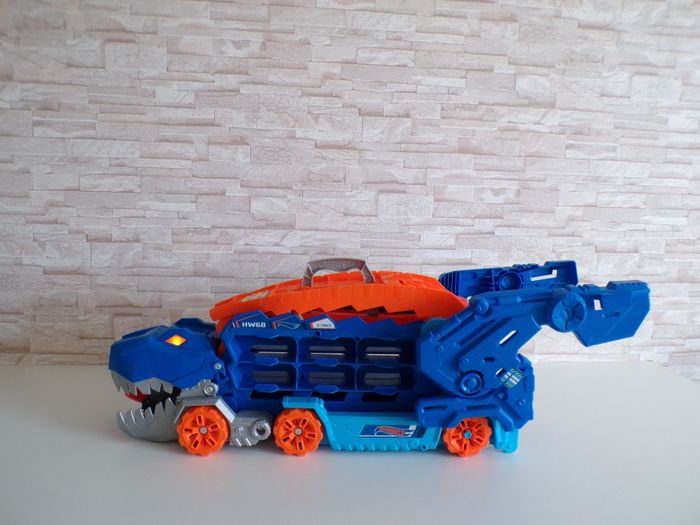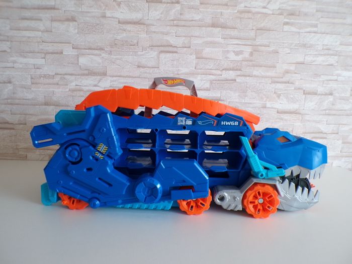 Camion et Dino Piste de Course - Transporteur géant T-Rex - Hot Wheels - Hotwheels, en très bon état, proche du neuf. Les effets sonore et lumineux fonctionnent parfaitement. La camion avale les voitures en le faisant rouler, en abaissant sa queue qui sert de piste, le camion se transforme en dinosaure T-rex. Tout fonctionne parfaitement. Mon dressing est trié par catégories, tailles et saisons pour les vêtements. #sonia222404 #jouetenfantsonia222404 #hotwheelsjamsonia222404