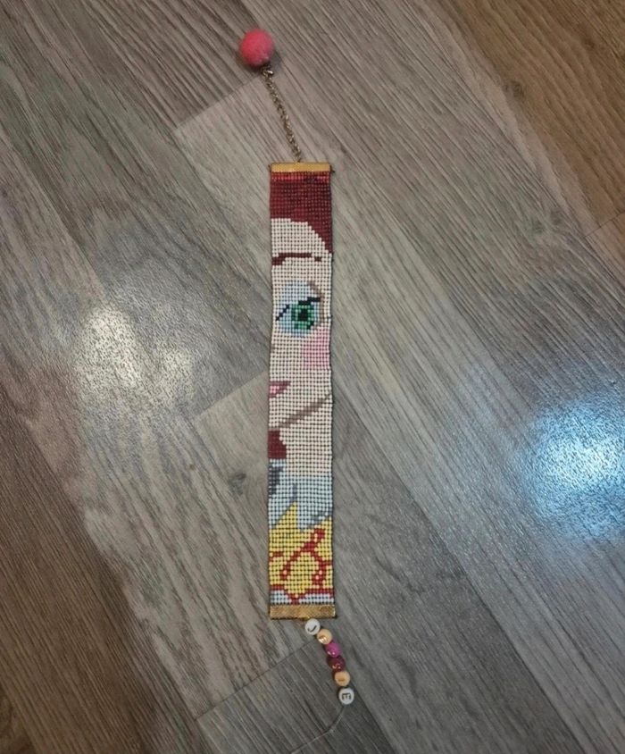 Joli marque page jessie Tout en perles avec accessoires pompon rose tout doux et prenom jessie en perles lettre. Tbe. Ideal 🎁🎄 D autres modeles dans mon dressing.