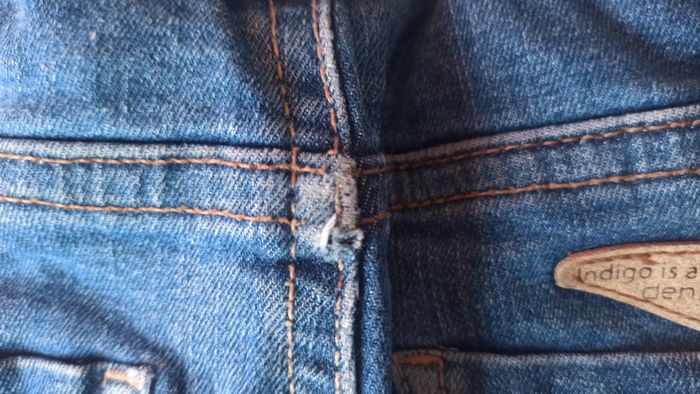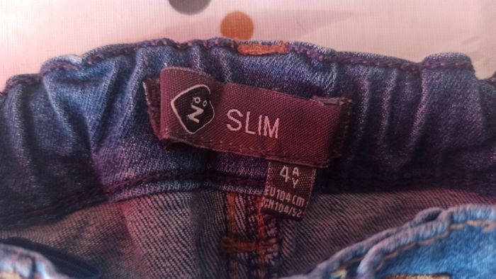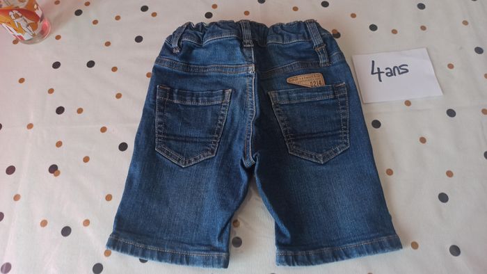 Short en jean 4 ans. Juste 1 accroc à l'arrière (voir dernière photo). Peut se resserrer à la taille