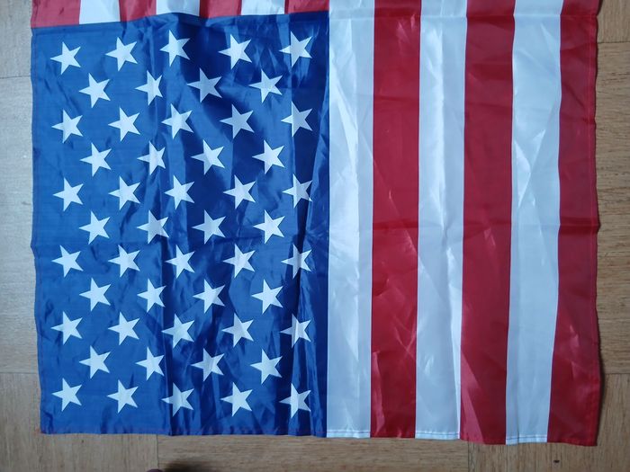 drapeau américain (étoiles blanches sur fond bleu, bandes rouges et blanches). Article léger, en matière plastique, idéal pour une décoration de table lors d’événements à thème (soirée USA, anniversaire, fête, Halloween, événement scolaire).