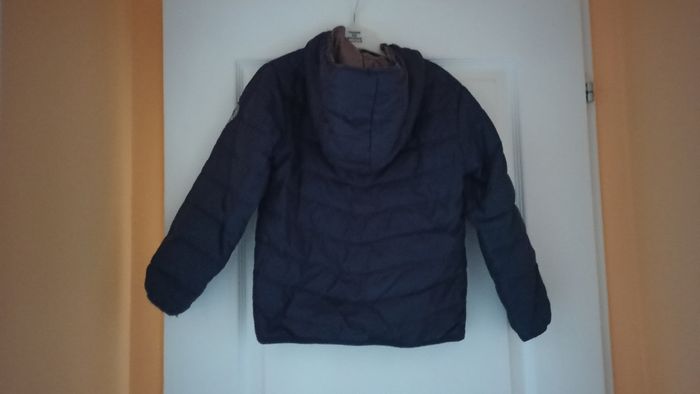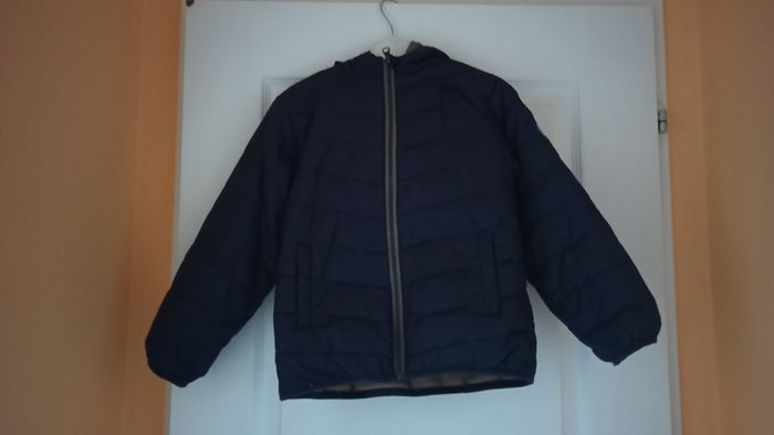 Doudoune à capuche / manteau d'hiver garçon 6 ans. Très bon état. Un petit accroc sur le dessous d'une manche (voir dernière photo). Intérieur polaire. Étiquette disponible pour écrire le prénom, le nom et la classe.
