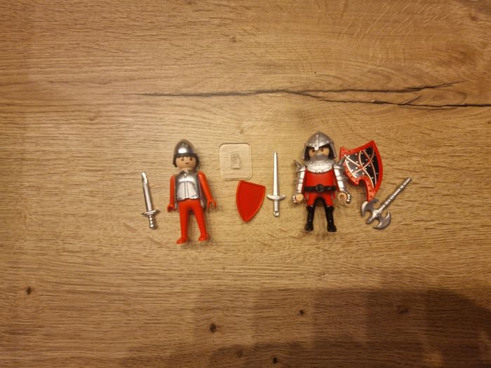 Je vends ce duo de chevaliers Playmobil. - Type de produit : Figurines - Marque : Playmobil - Âge recommandé : De 4 à 6 ans Très bon état. N'hésitez pas à me contacter pour plus d'informations !