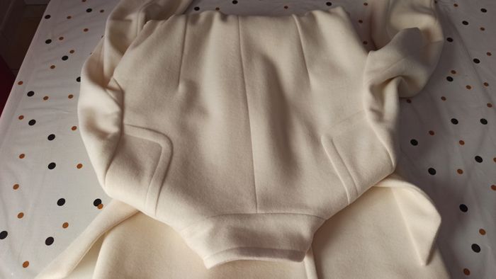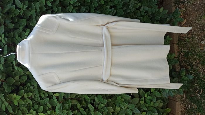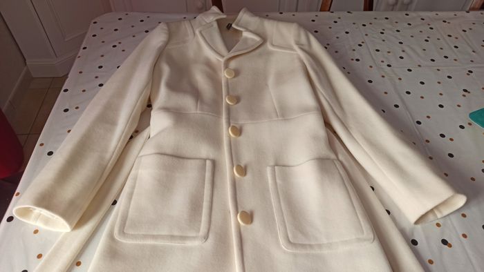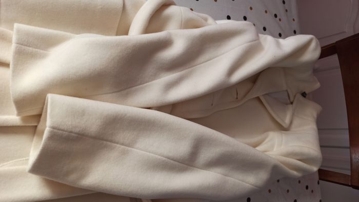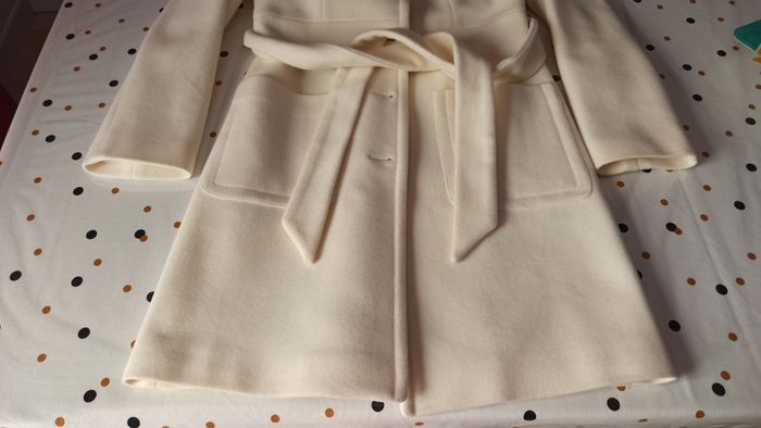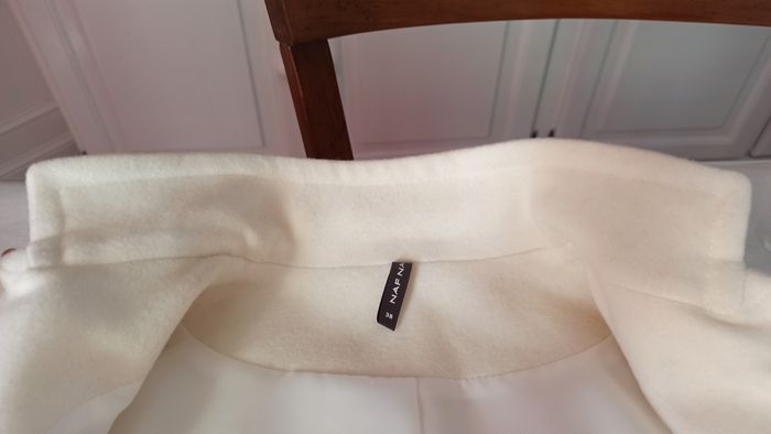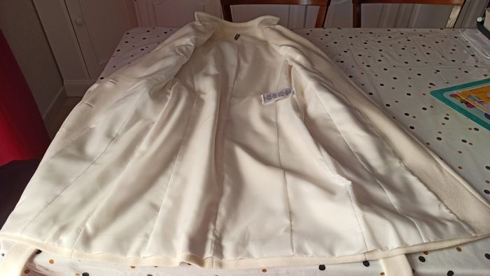 Vends un très beau manteau couleur crème taille 38 porté 2-3 fois en excellent état avec 80% en laine. Acheté chez Naf Naf. Longueur avec col relevé = 97cm (91 cm avec col replié)