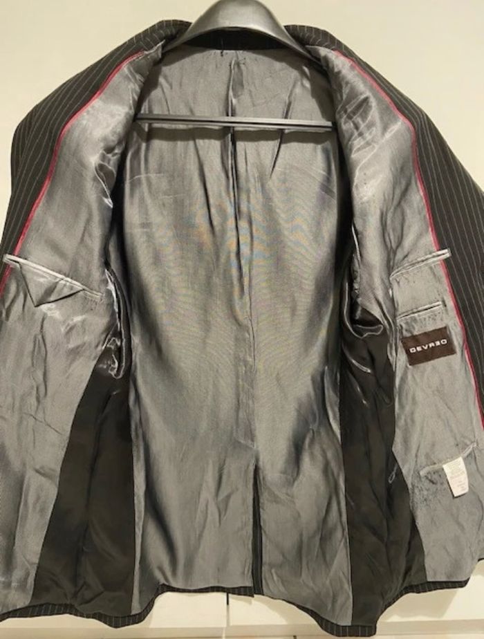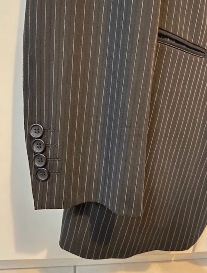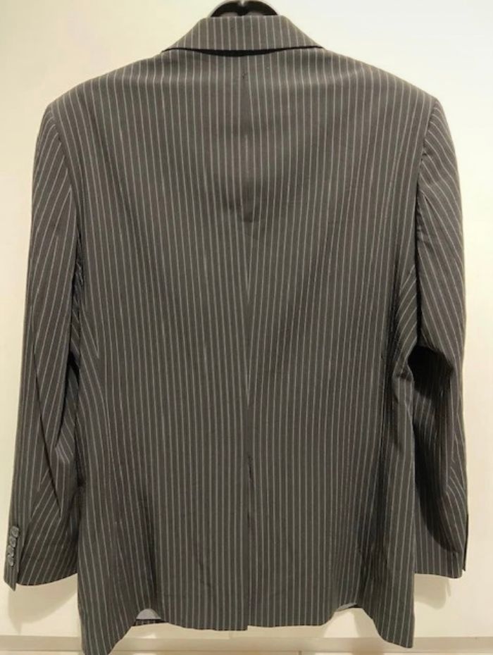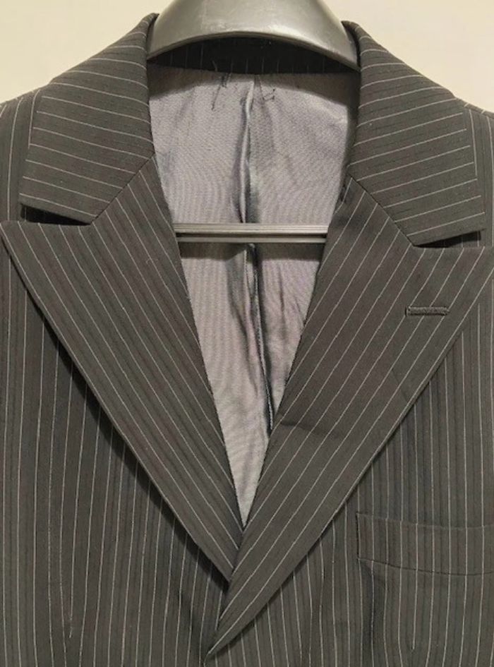 Veste de costume noire à fines rayures blanches