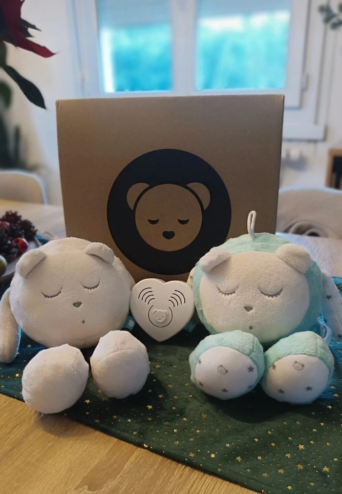 Je vends ce joli duo de peluches Myhummy apaisantes, parfaites pour accompagner bébé au pays des rêves 🌙💫