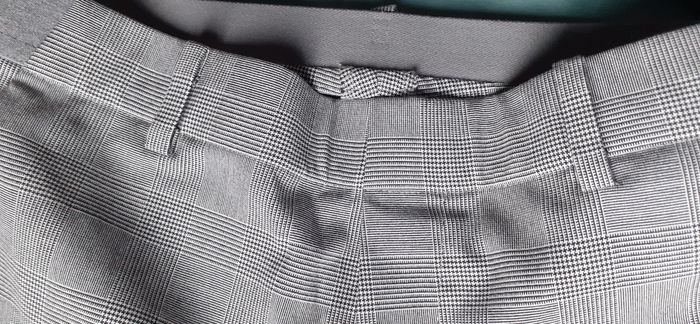 Vends un pantalon 66 % polyester, 32 % coton, 2 % élasthanne, 2 poches latérales, 2 fausses poches derrière, ceinture élastique devant et derrière, fausse braguette, motif prince de galles blanc et noir, marque Uniqlo, taille S. Longueur entrejambe : 66 cm.