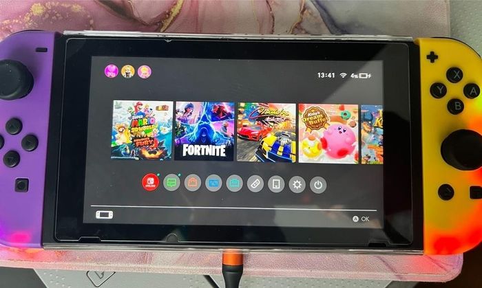 Nintendo Switch avec jeu Mario SD et jeux supplémentaires (voir dernière photo).