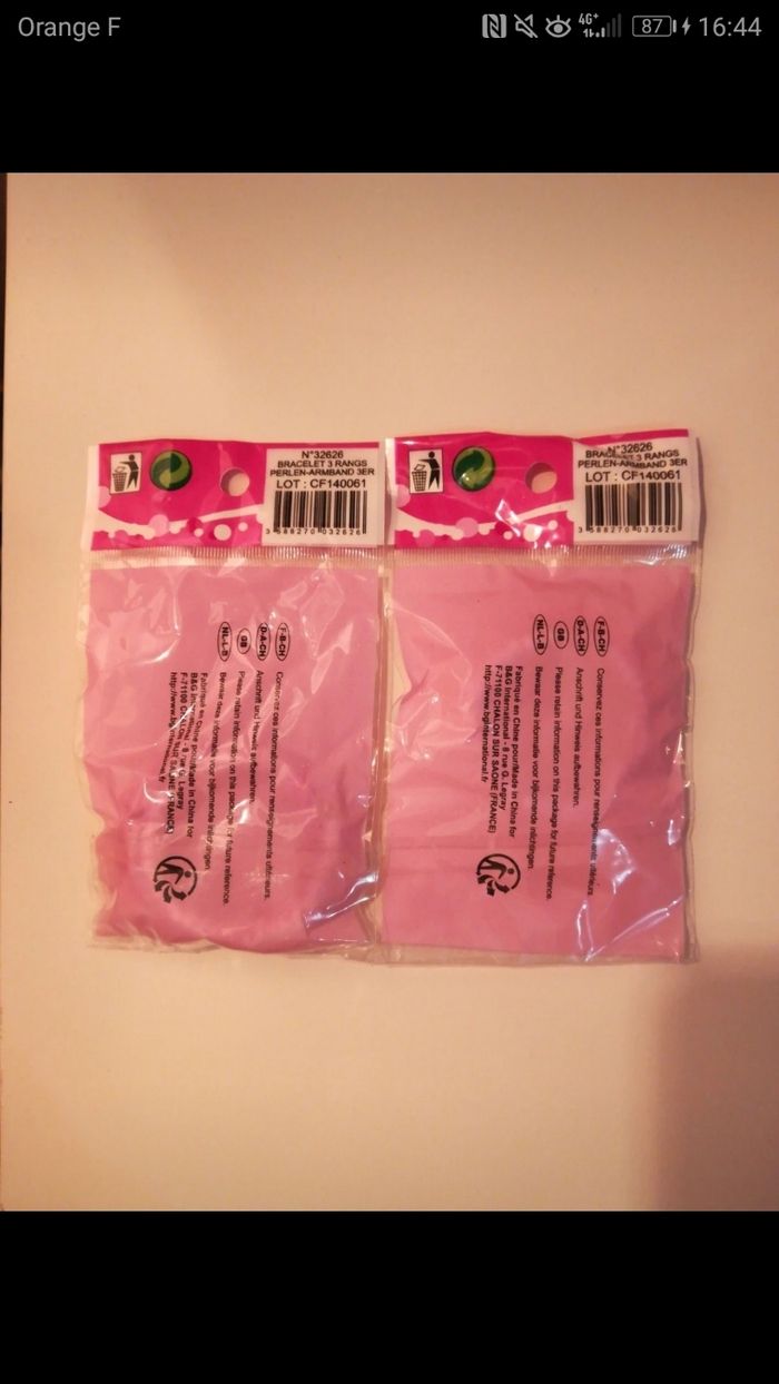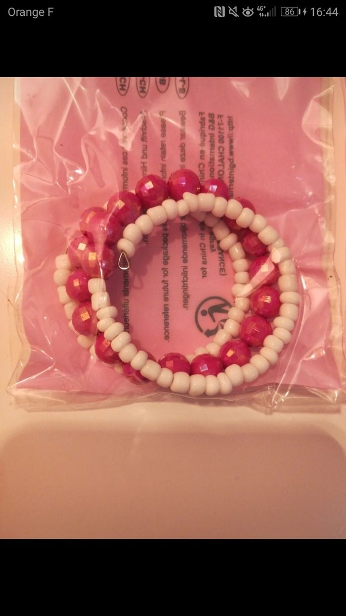 Lot de 2 bracelets 3 rangs en perles roses et blanches, petite fille, neuf avec étiquette