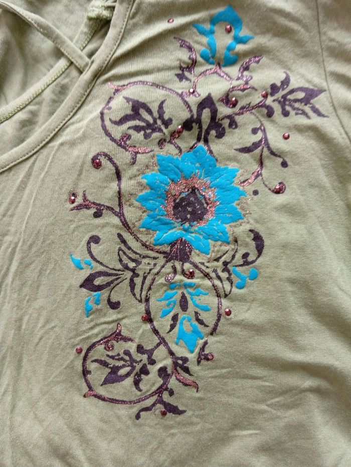 Viscose, élasthane. Jolies broderies fleurs bleues. C12