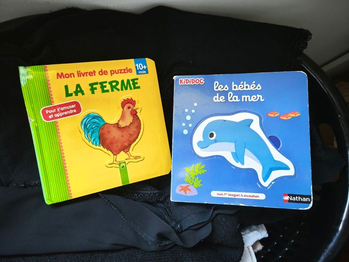 Lot de livre d'encastrement sur le thème des animaux marins et de la ferme. Les livres présentent quelques défauts visibles sur les photos.