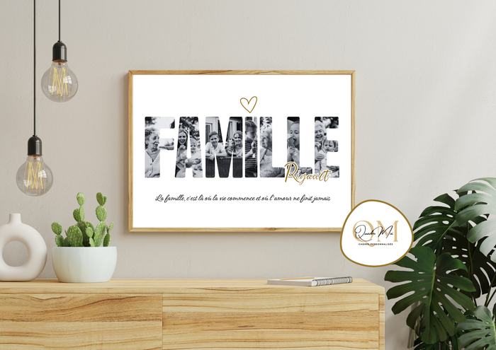 Cadre photo personnalisé, visuel créé sur mesure, cadre inclus.