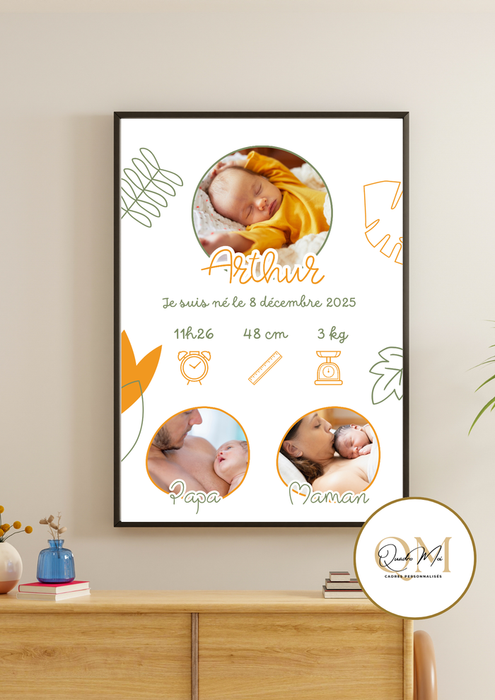 Cadre photo personnalisé, visuel créé sur mesure, cadre inclus.