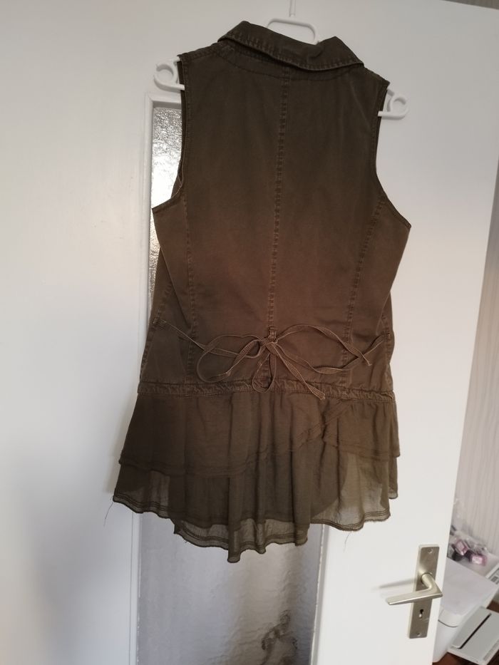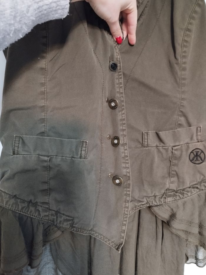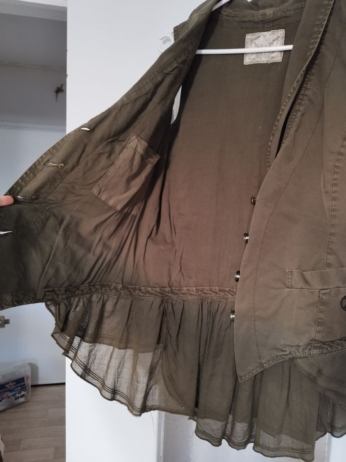 Vends veste femme, manches courtes, en très bon état général ! Très élégante avec ses boutons et son "voile" en bas. Elle a 2 poches non fantaisies + 1 à l'intérieur. Acheté à DDP (magasin qui coûte très cher).
