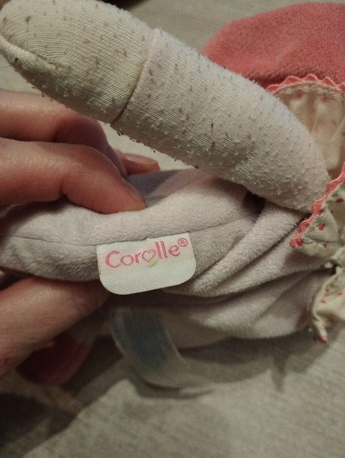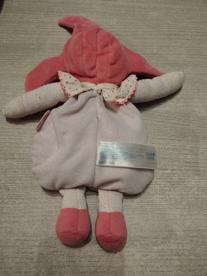 Poupée doudou Corolle rose dimension environ 25 cm. Tachée sur le devant voir photo.