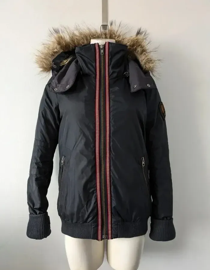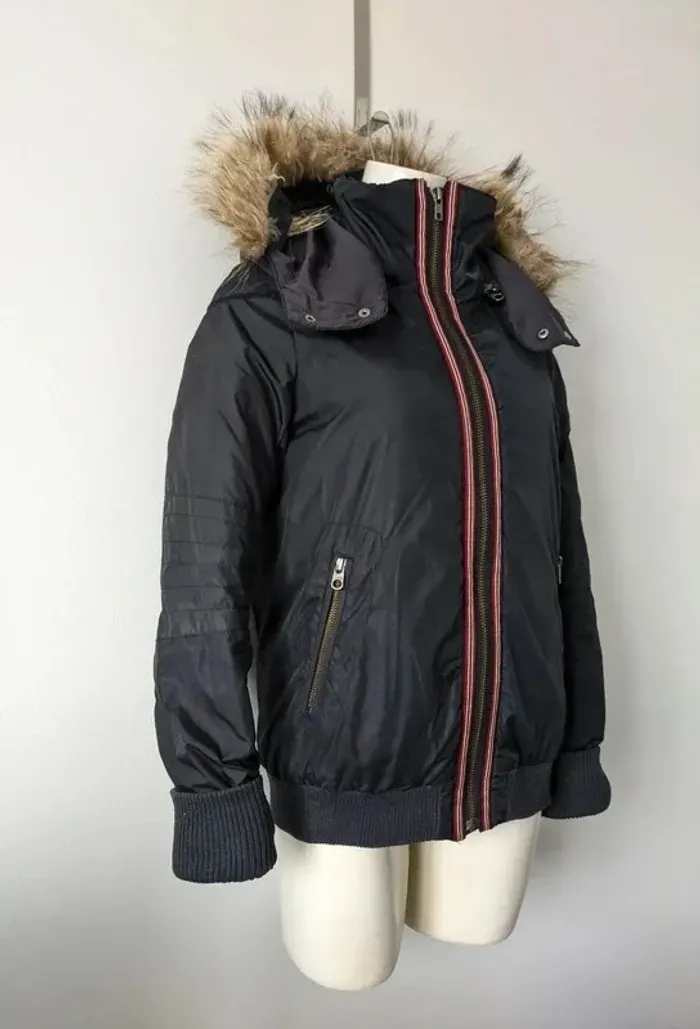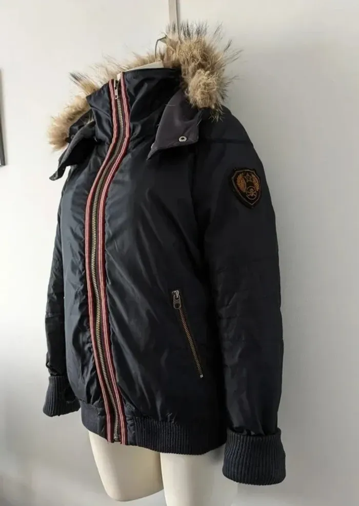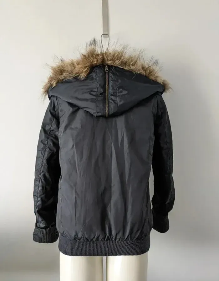 Largeur aisselle 49 cm Longueur 62 cm capuche et fausse fourrure détachables En bon état (usure visible sur les photos)