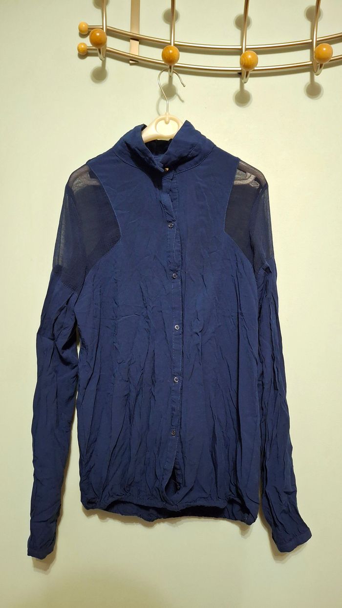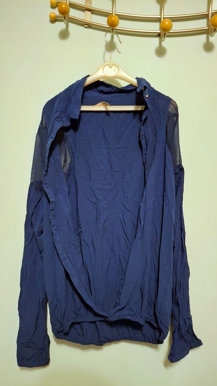 Blouse, chemise bleue 5 boutons, semi-transparente, taille S, Bershka