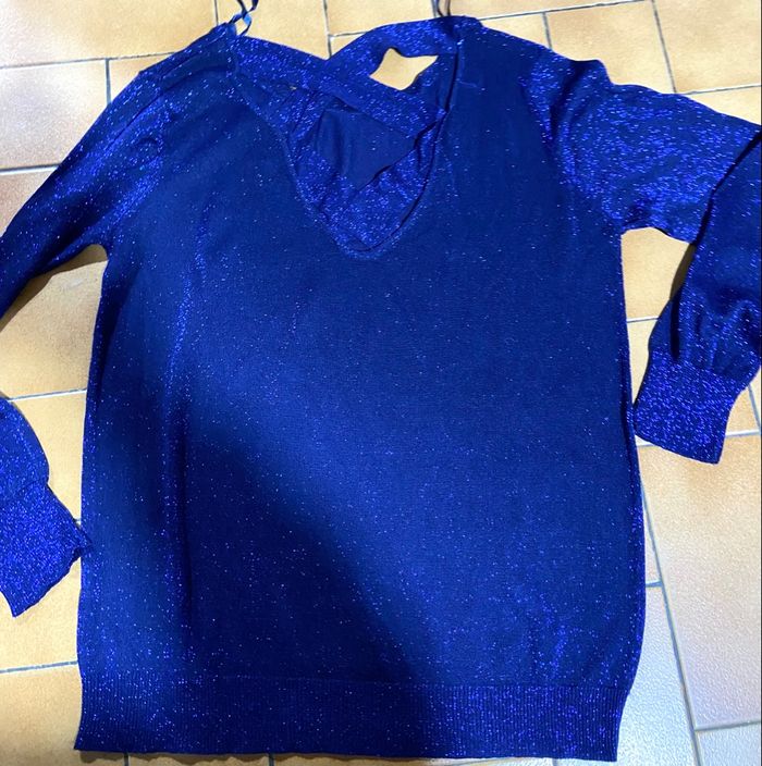 Pull  bleu à paillette taille XL  mim - photo numéro 5