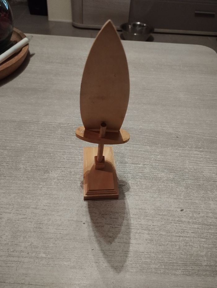 Mini planche de surf sur son support mesurant environ 20 cm. Souvenir de République Dominicaine.
