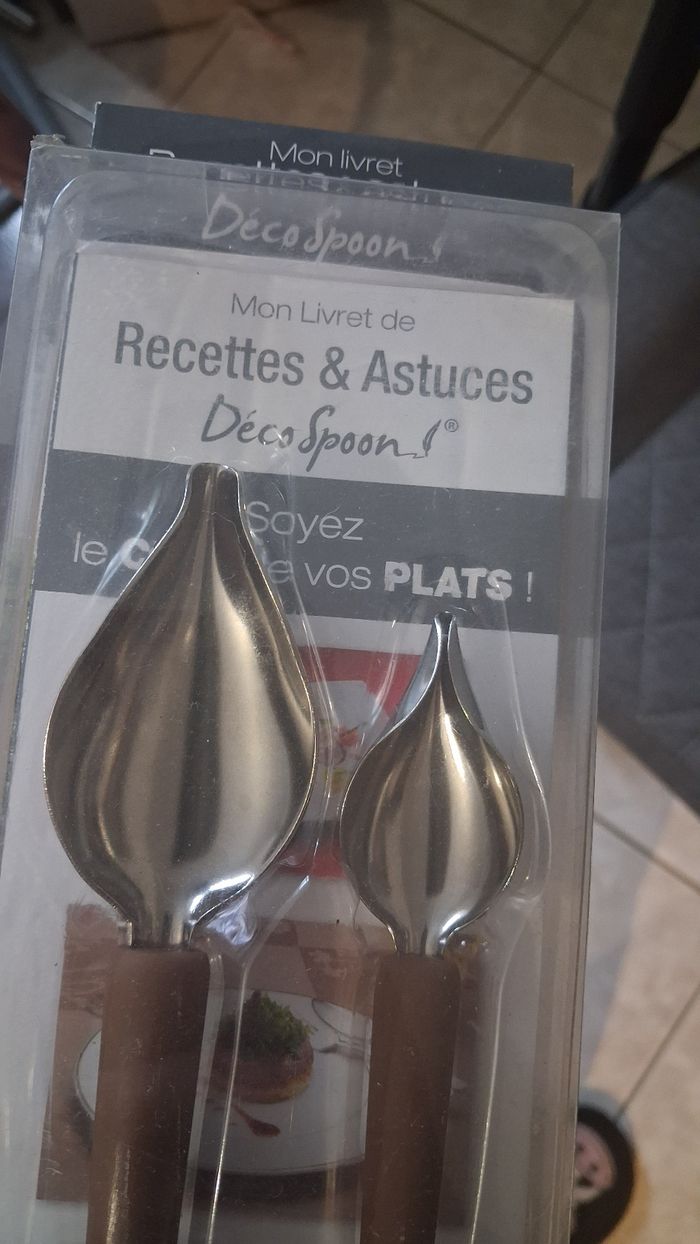 Lot 2 cuillères plumes pour décorer vos plats. Jamais utilisé. Livret fourni.