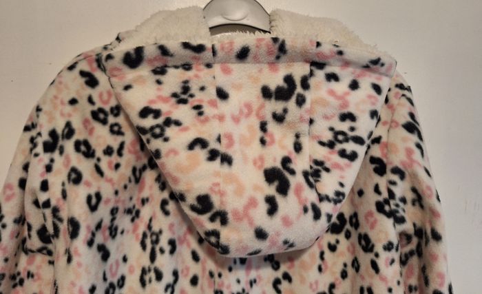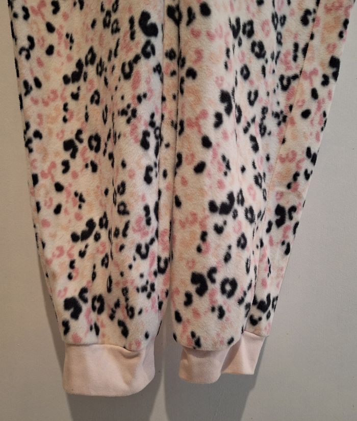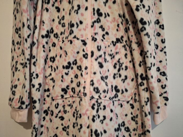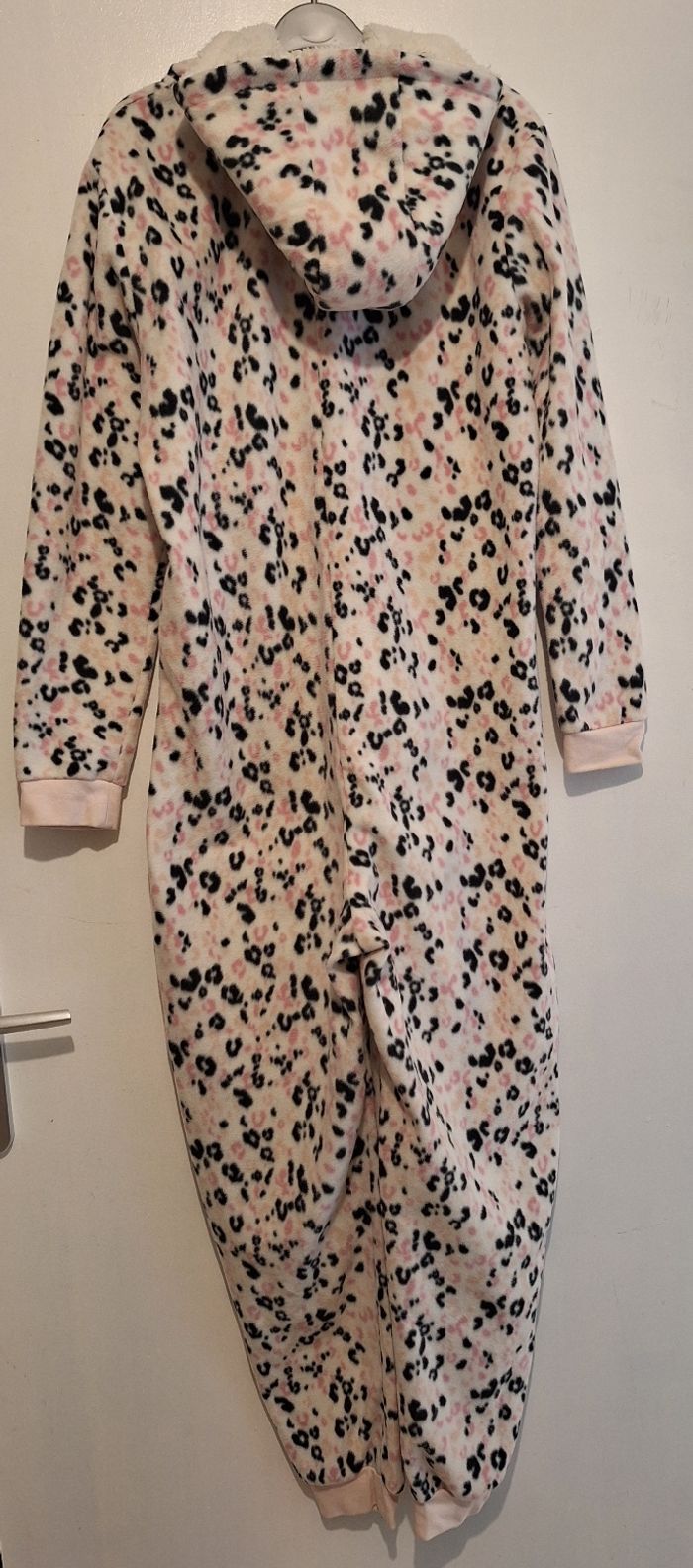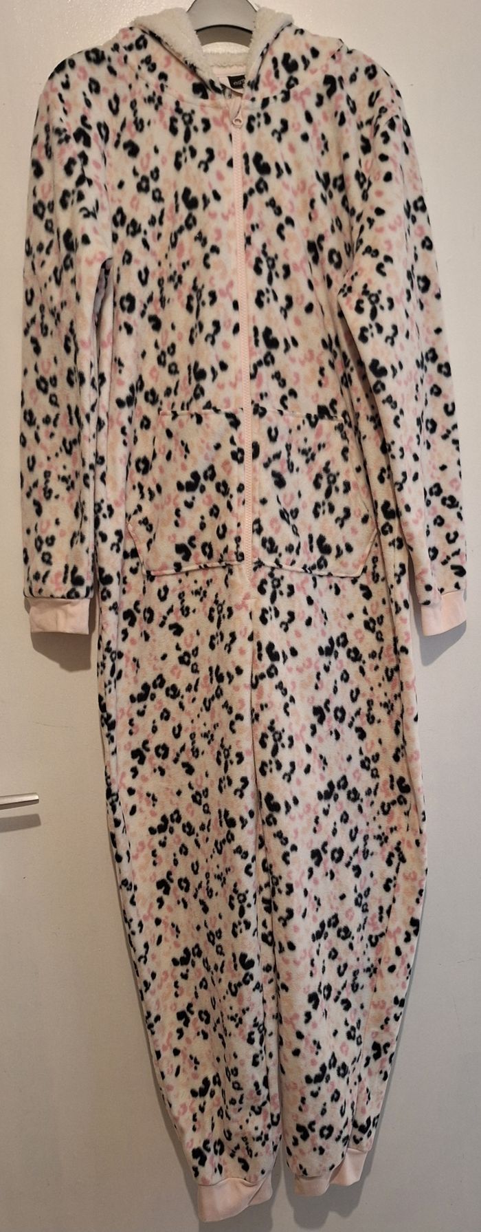 Combinaison à capuche zippée en pilou blanche, noire et rose