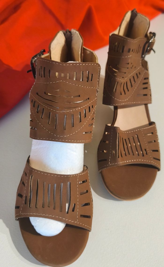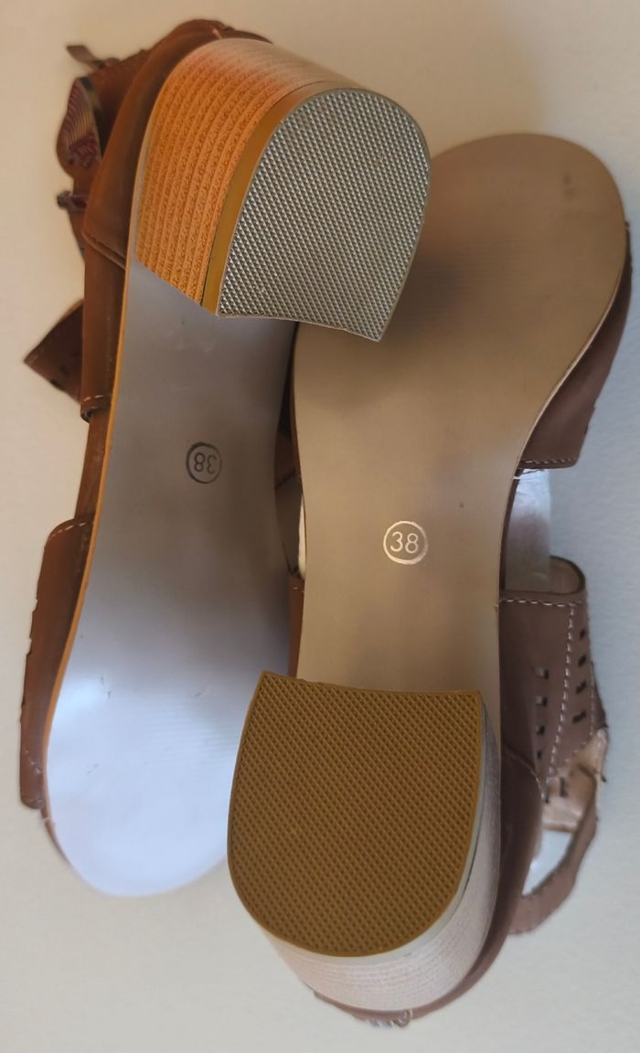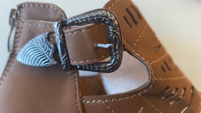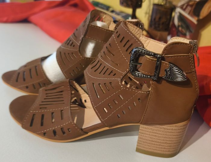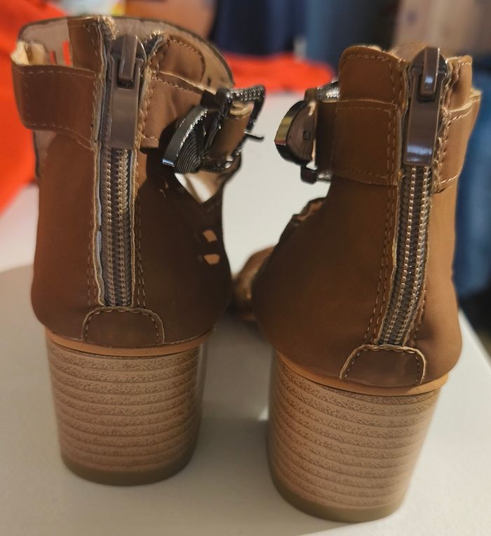 Sandales neuves ( le peu d'usure est celle de l essayage) Fermeture éclair à l'arrière Achetée taille 38 , taille plutôt un 37 et demi