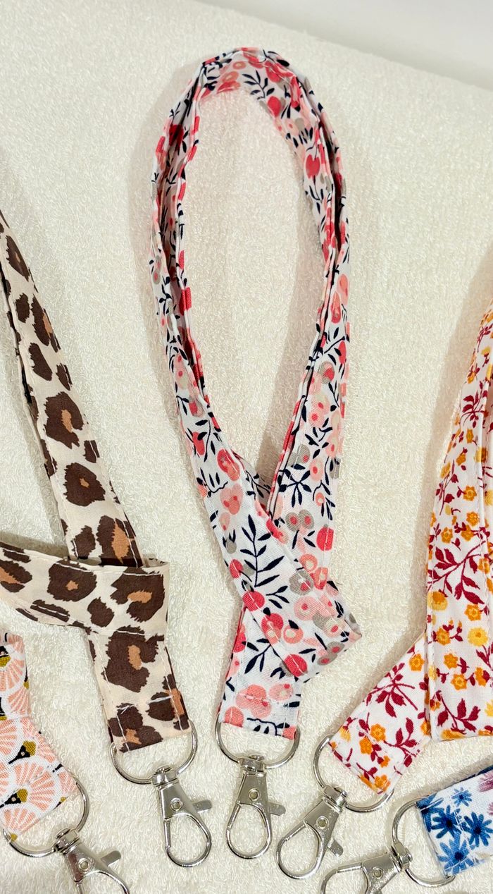 Tour de cou, porte-badge, porte-clés, accessoire idéal pour infirmière ou étudiant. En plus d'être utile et pratique, les motifs colorés égayeront les tenues des personnels soignants mais aussi celui des institutrices, maîtresses, ATSEM, AESH ... etc. Les enfants/collégiens/étudiants pourront y attacher leurs clés, une carte de bus ou de cantine ! Dimensions : env. 90 cm x 2 cm Attache pivotante en métal. D'autres coloris dans mon dressing. Lavable à 30°