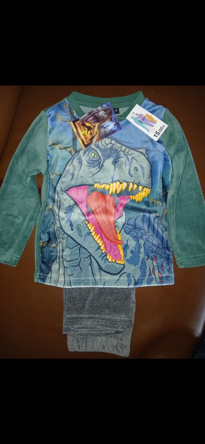 Ensemble pyjamas en velours jurassic Word dinosaure 3 ans - photo numéro 1