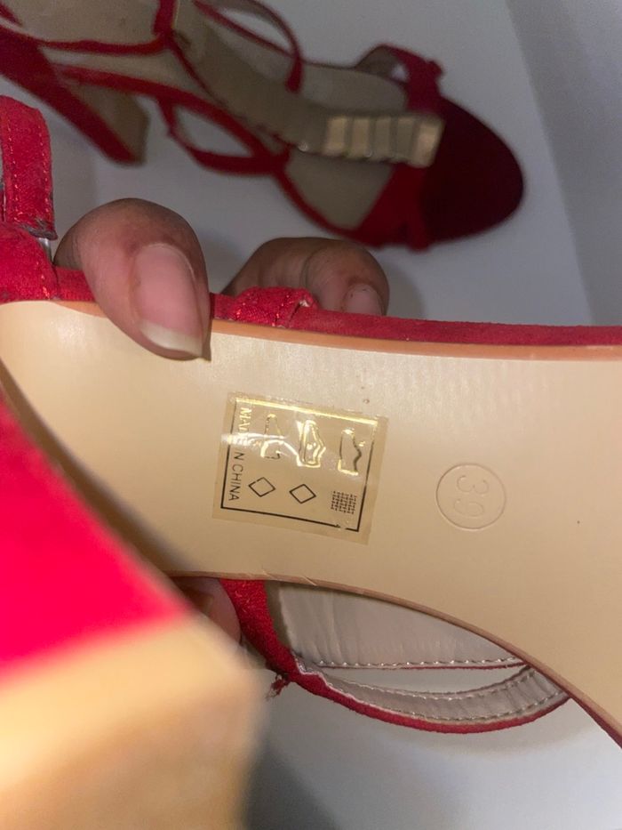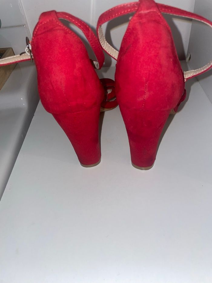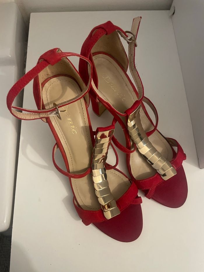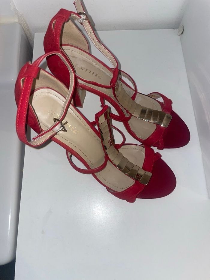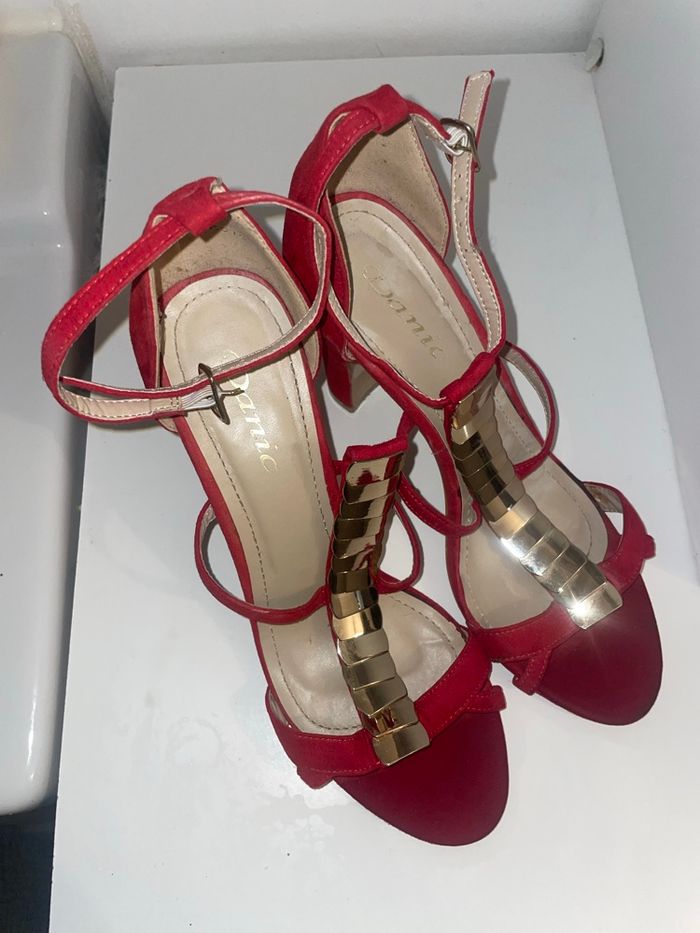 Paire de talons rouges, élégante à détails dorées