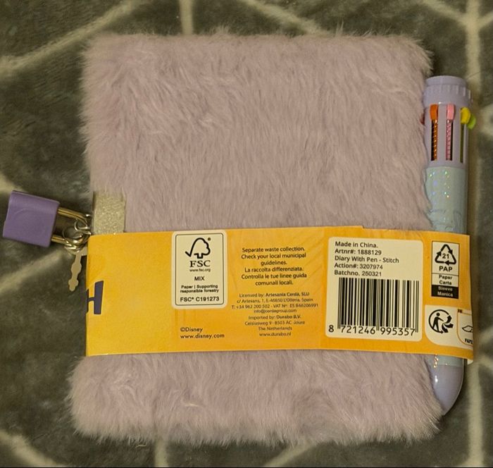 Journal intime Stitch avec une couverture toute douce. Avec un cadenas et clé ainsi qu’un stylo multi-couleurs. Neuf. 📦 Envoi soigné
