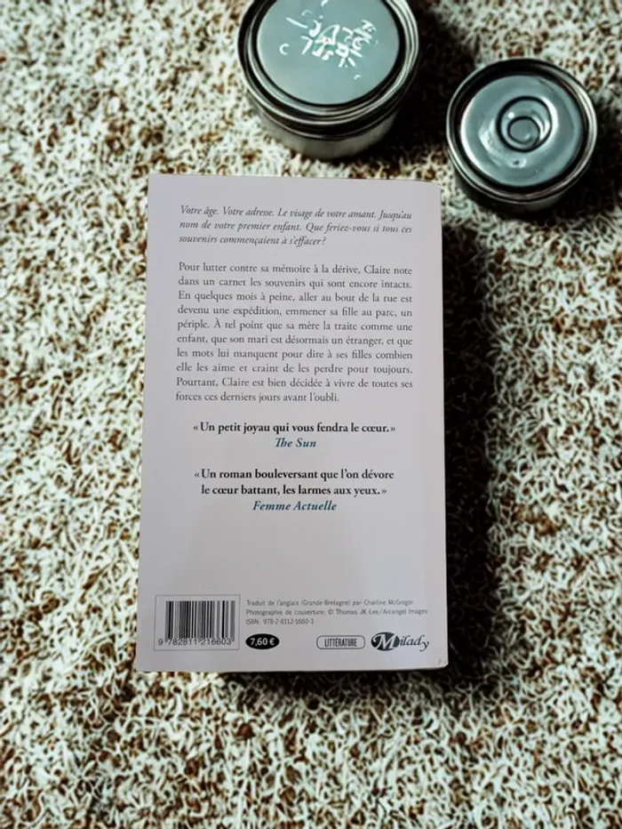 Je vends ce magnifique roman de Rowan Coleman, 'Avant de t'oublier'. C'est l'histoire de Claire, qui commence à perdre la mémoire et décide d'écrire un carnet pour ses filles. C’est un livre d’une beauté rare, à la fois déchirant et plein d’espoir.