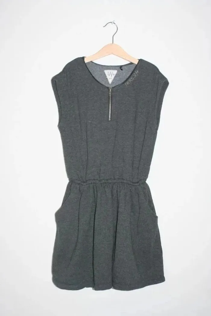 Robe grise manches courtes, marque Ikks, taille 12 ans, poches sur le côté, taille élastique, matière style sweat, 330g