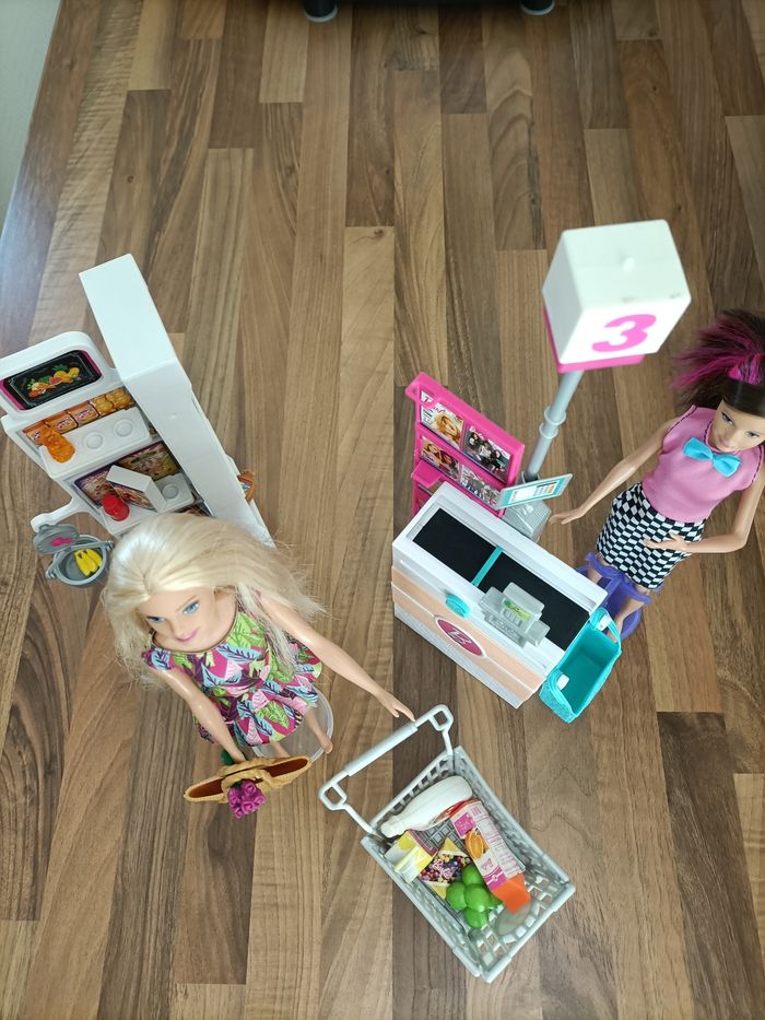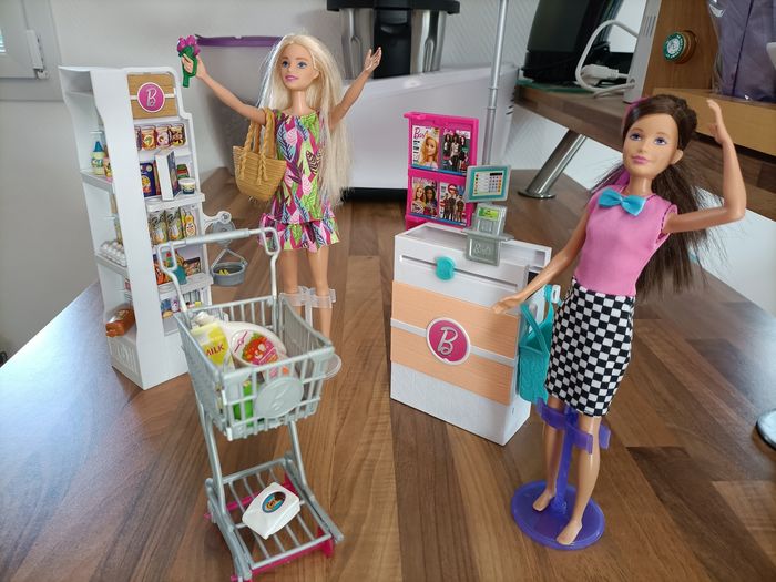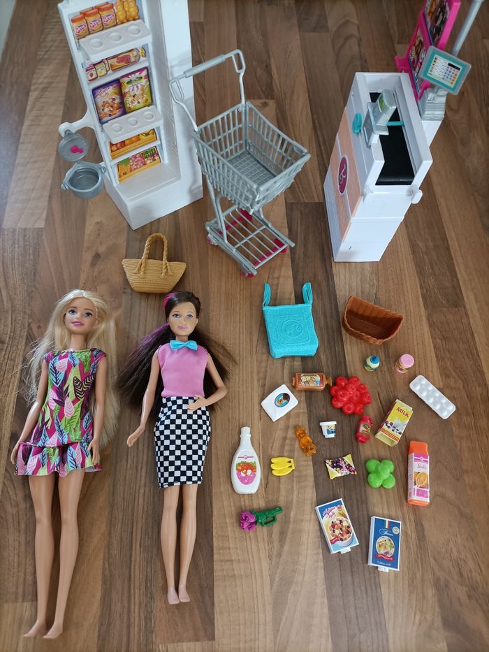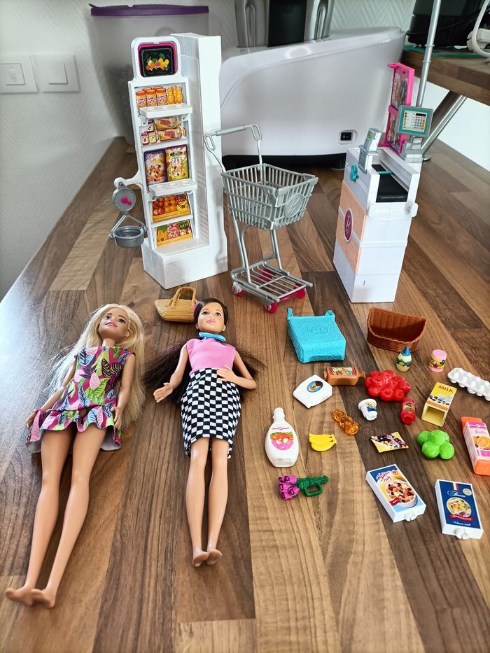 Supermarché Barbie+ 1 caddie+ 2 barbies et nombreux accessoires