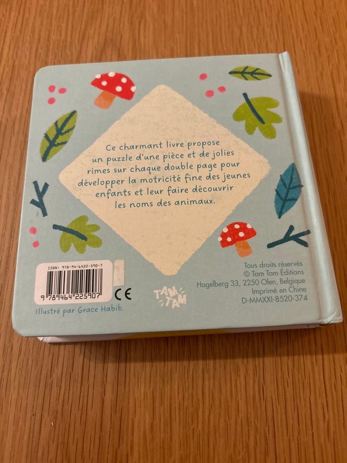 Mon livre-puzzle d’une pièce - Les animaux Les animaux Les tout-petits ne sont pas près de se lasser de leur premier livre puzzle. Voici pourquoi : - Un puzzle d'une pièce à découvrir à chaque double page. - Des rimes adorables qui divertissent et enrichissent le vocabulaire. - De charmantes illustrations qui attirent et gardent l'attention. Une façon amusante et efficace de stimuler la motricité et le développement du cerveau, tout en enrichissant le vocabulaire ! Un incontournable des bibliothèques enfantines.