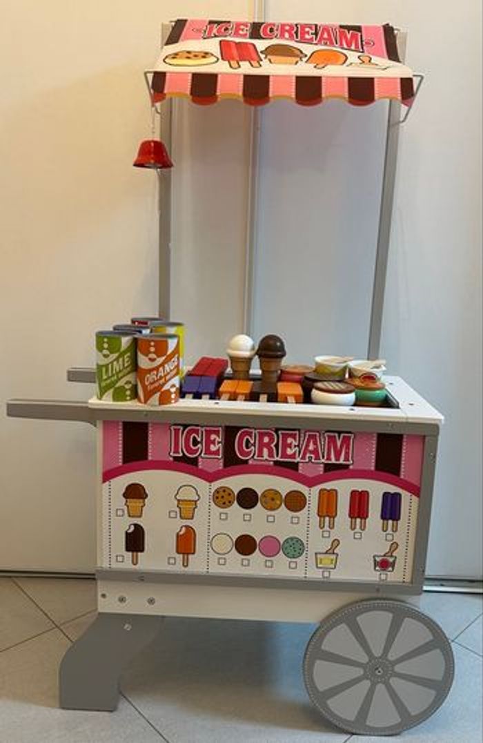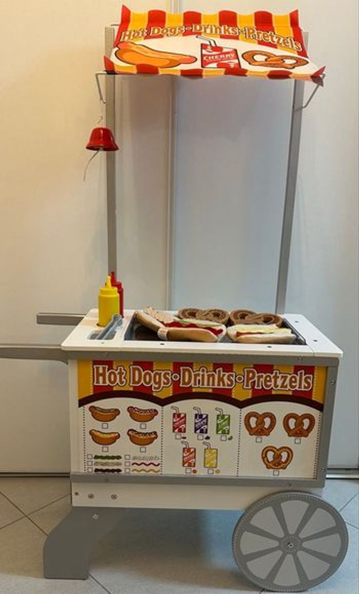 Votre enfant va adorer jouer au marchand ambulant grâce à ce chariot à glaces, hot-dogs et friandises de la marque Melissa and Doug !