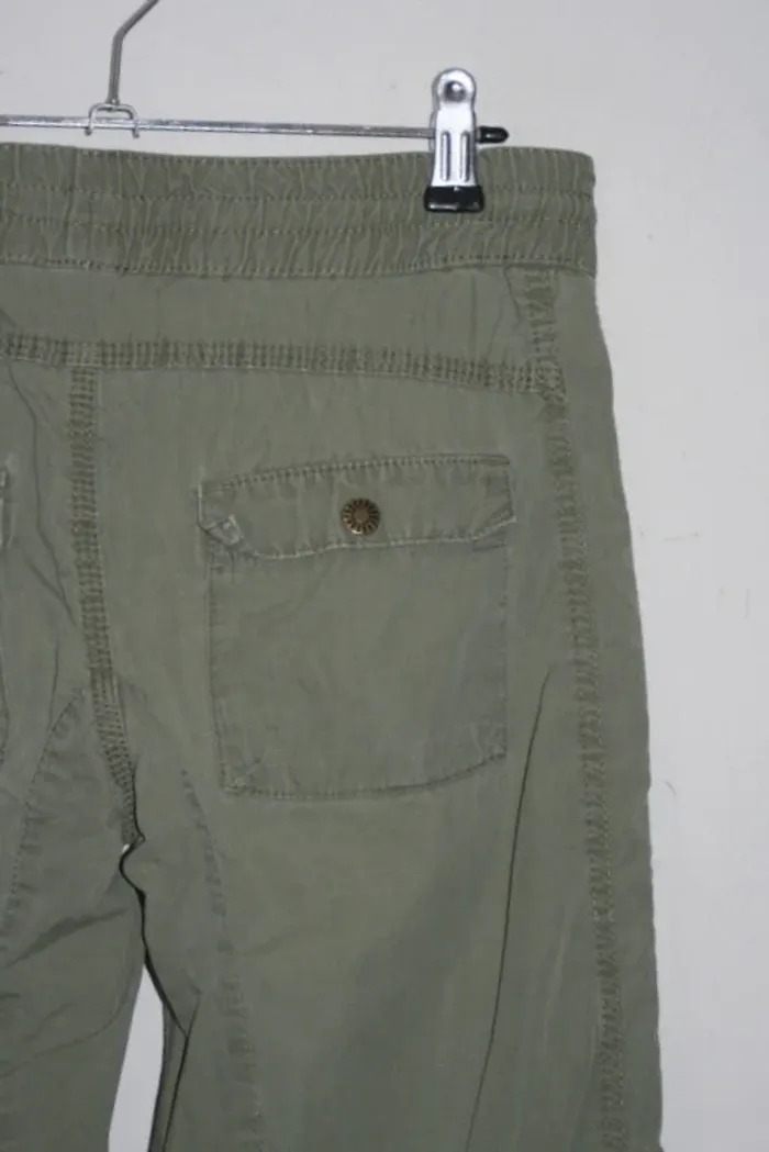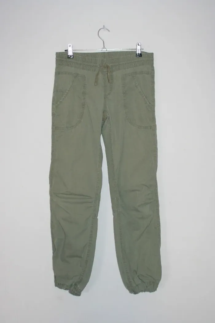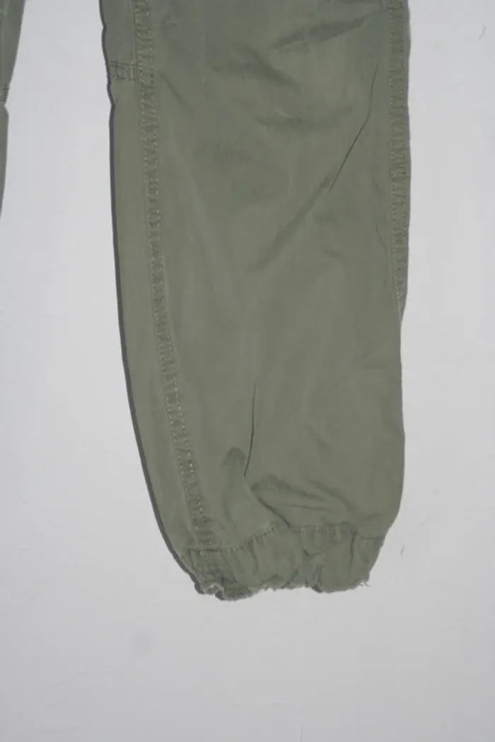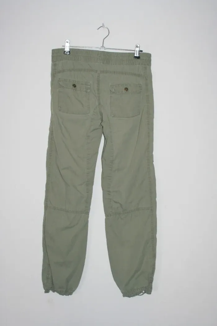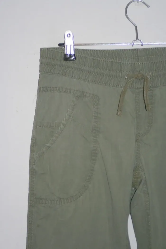 Pantalon kaki de chez H&M taille 12-13 ans, resserrables sur le bas cf photo, un petit peu usé sur le bas, taille élastique, passage du lacets à la taille à repriser un peu, 370g