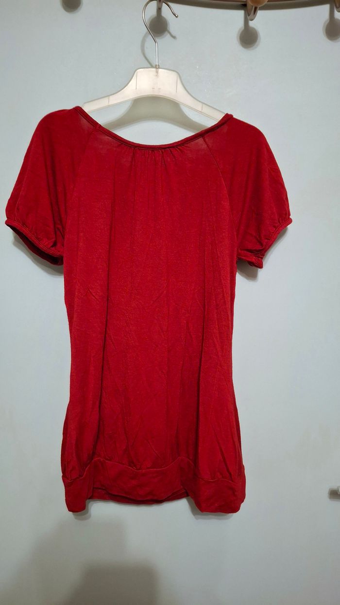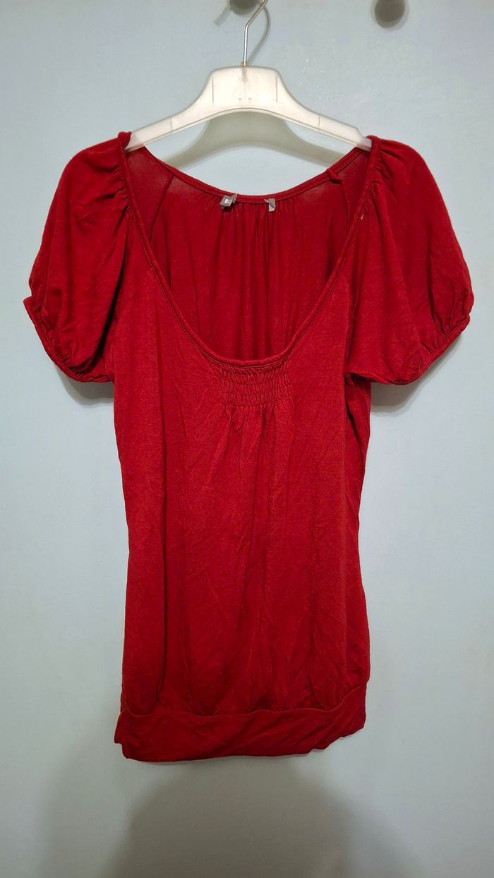 T-shirt rouge type blouse fluide, Ici et maintenant