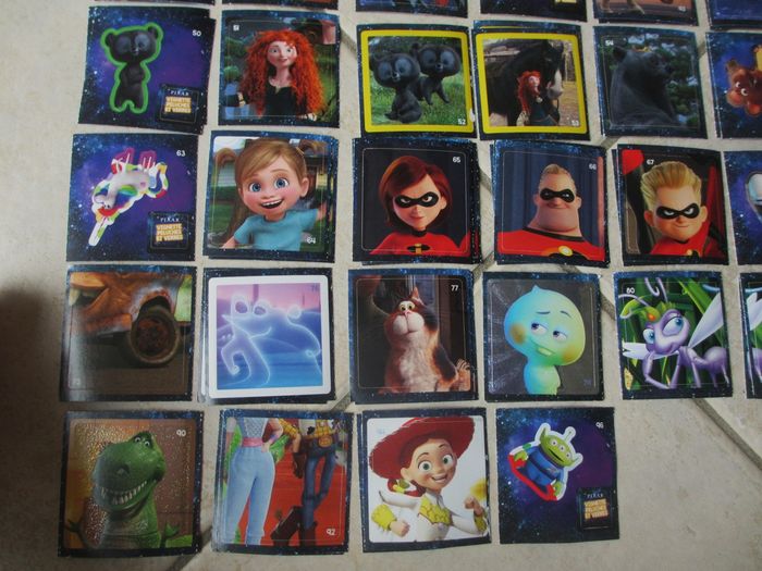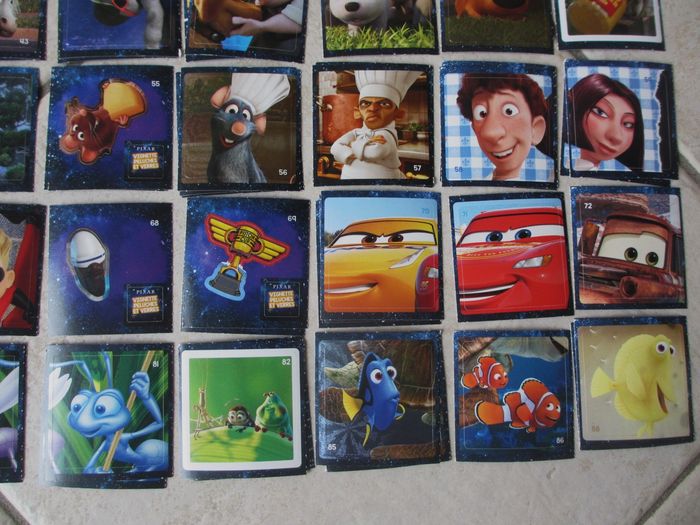 Collection Pixar « Vis tes rêves » Cora/Match Livret (avec autocollants déjà collés) + autocollants seuls neufs à 0,10 € pièce. 15 € l’ensemble. 147 autocollants : sont disponibles les n° 2(x2)-3(x3)-4(x3)-6(x2)-7(x1)-8(x1)-9(x2)-10(x1)-11(x2)-12(x2)-13(x2)-15(x2)-16(x1)-17(x4)-18(x1)-19(x3)-20(x1)-22(x4)-23(x2)-25(x1)-26(x2)-29(x1)-30(x2)-31(x1)-32(x3)-33(x2)-34(x1)-35(x2)-36(x1)-37(x1)-38(x3)-39(x1)-40(x1)-42(x1)-43(x2)-44(x3)-45(x2)-48(x1)-49(x1)-50(x2)-51(x1)-52(x1)-53(x2)-54(x2)-55(x2)-56(x3)-57(x3)-58(x5)-59(x2)-63(x1)-64(x2)-65(x5)-66(x3)-67(x2)-68(x1)-69(x2)-70(x3)-71(x1)-72(x1)-73(x1)-76(x2)-77(x2)-79(x3)-80(x3)-81(x3)-82(x4)-85(x4)-86(x1)-88(x2)-90(x4)-92(x2)-94(x2)-96(x1)