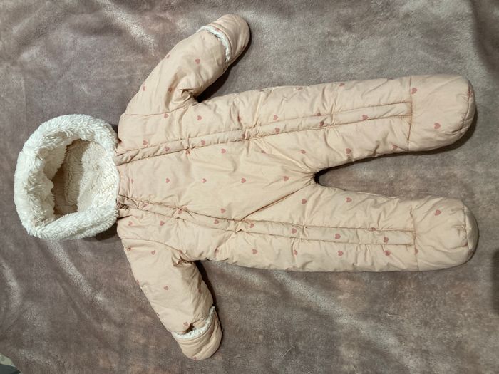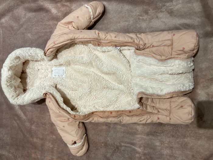 Combi-pilote imprimée coeurs bébé doublée fausse fourrure