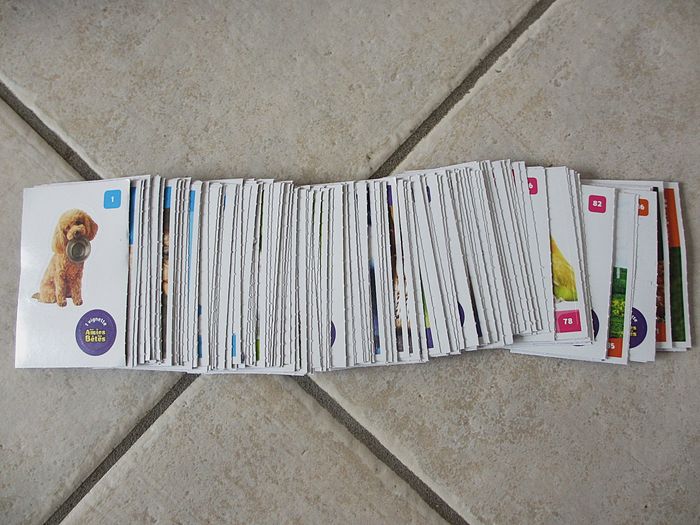 Collection « Nos Amies les Bêtes » Cora/Match Figurine à 0,50 €, autocollants à 0,20 € pièce. Livret collector neuf avec boîte à 3 € (disponibles en 2 exemplaires). Figurines : sont disponibles les n° 1-6-9-11-13-14-16-18-19-22-23. Autocollants : sur les 96 autocollants de la collection, il ne manque que le n° 50. Sont disponibles les n° 1(x1)-2(x1)-3(x2)-4(x2)-5(x2)-6(x2)-7(x2)-8(x1)-9(x1)-10(x2)-11(x2)-12(x2)-13(x2)-14(x1)-15(x3)-16(x1)--17(x1)-18(x4)-19(x3)-20(x2)-21(x1)-22(x1)-23(x1)-24(x4)-25(x1)-26(x3)-27(x5)-28(x1)-29(x2)-30(x2)-31(x1)-32(x1)-33(x1)-34(x1)-35(x3)-36(x1)-37(x1)-38(x1)-39(x6)-40(x1)-41(x2)-42(x1)-43(x1)-44(x2)-45(x2)-46(x4)-47(x2)-48(x3)-49(x4)-51(x3)-52(x3)-53(x1)-54(x2)-55(x3)-56(x1)-57(x1)-58(x1)-59(x2)-60(x4)-61(x2)-62(x4)-63(x3)-64(x1)-65(x1)-66(x1)-67(x2)-68(x1)-69(x3)-70(x2)-71(x1)-72(x3)-73(x3)-74(x3)-75(x1)-76(x3-77(x1)-78(x4)-79(x2)-80(x1)-81(x2)-82(x2)-83(x1)-84(x2)-85(x3)-86(x4)-87(x7)-88(x1)-89(x1)-90(x2)-91(x4)-92(x1)-93(x3)-94(x1)-95(x1)-96(x2). Etat neuf.